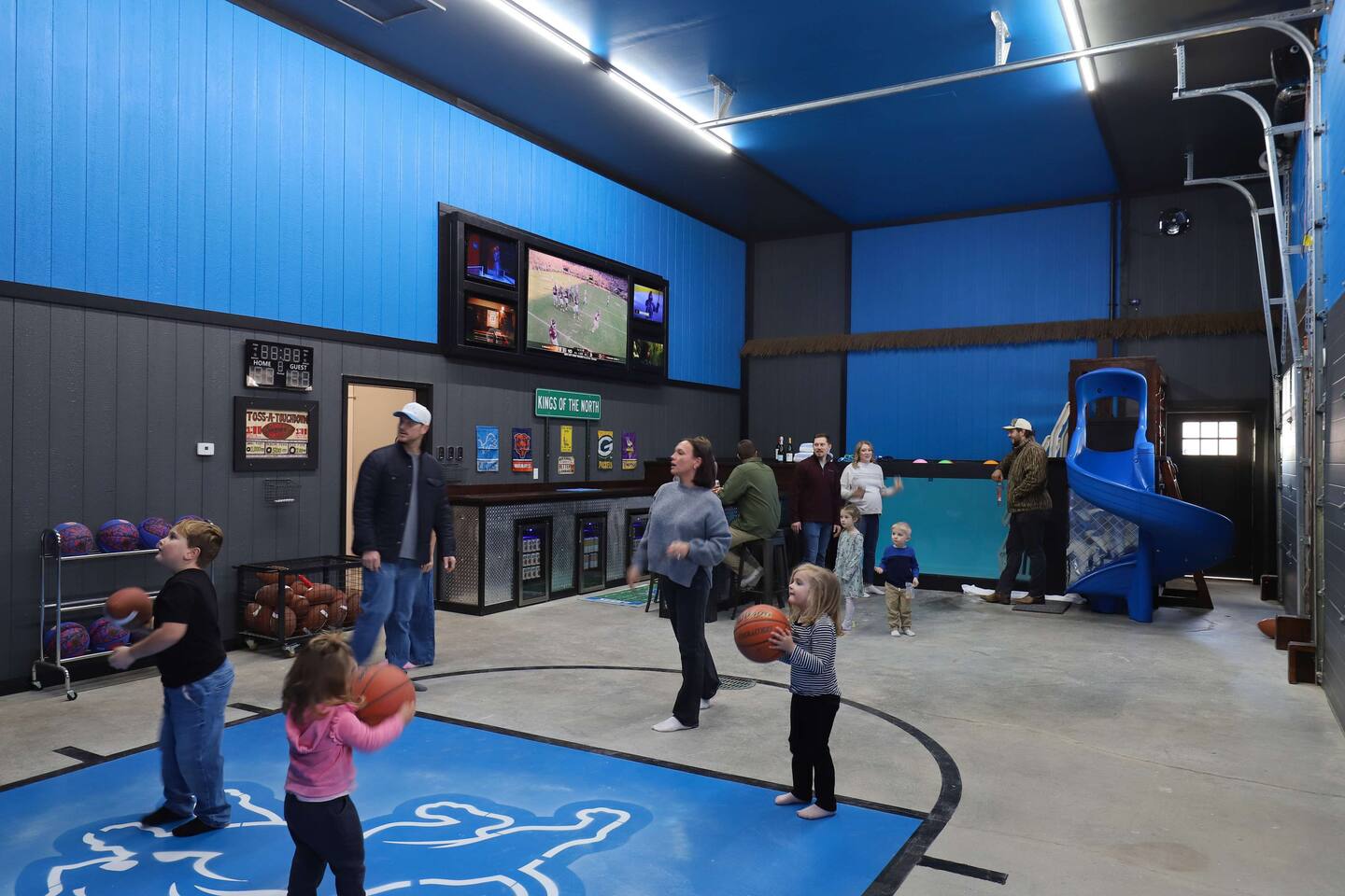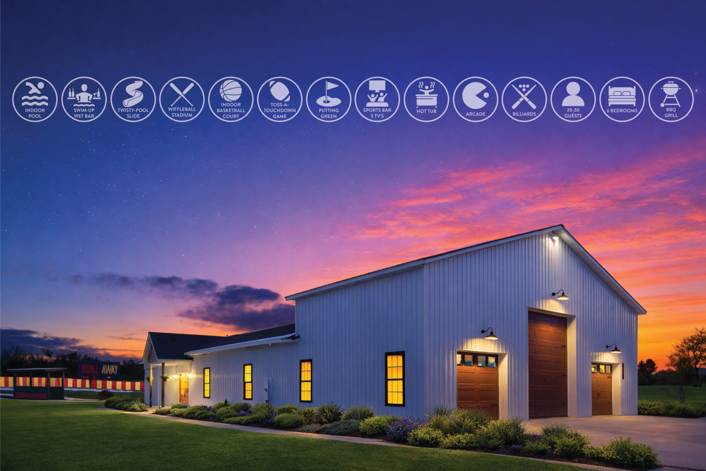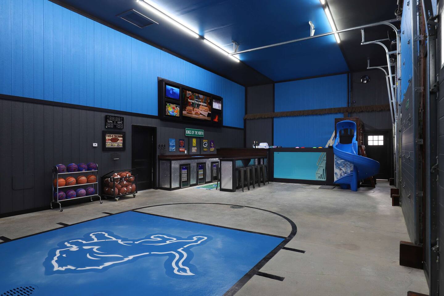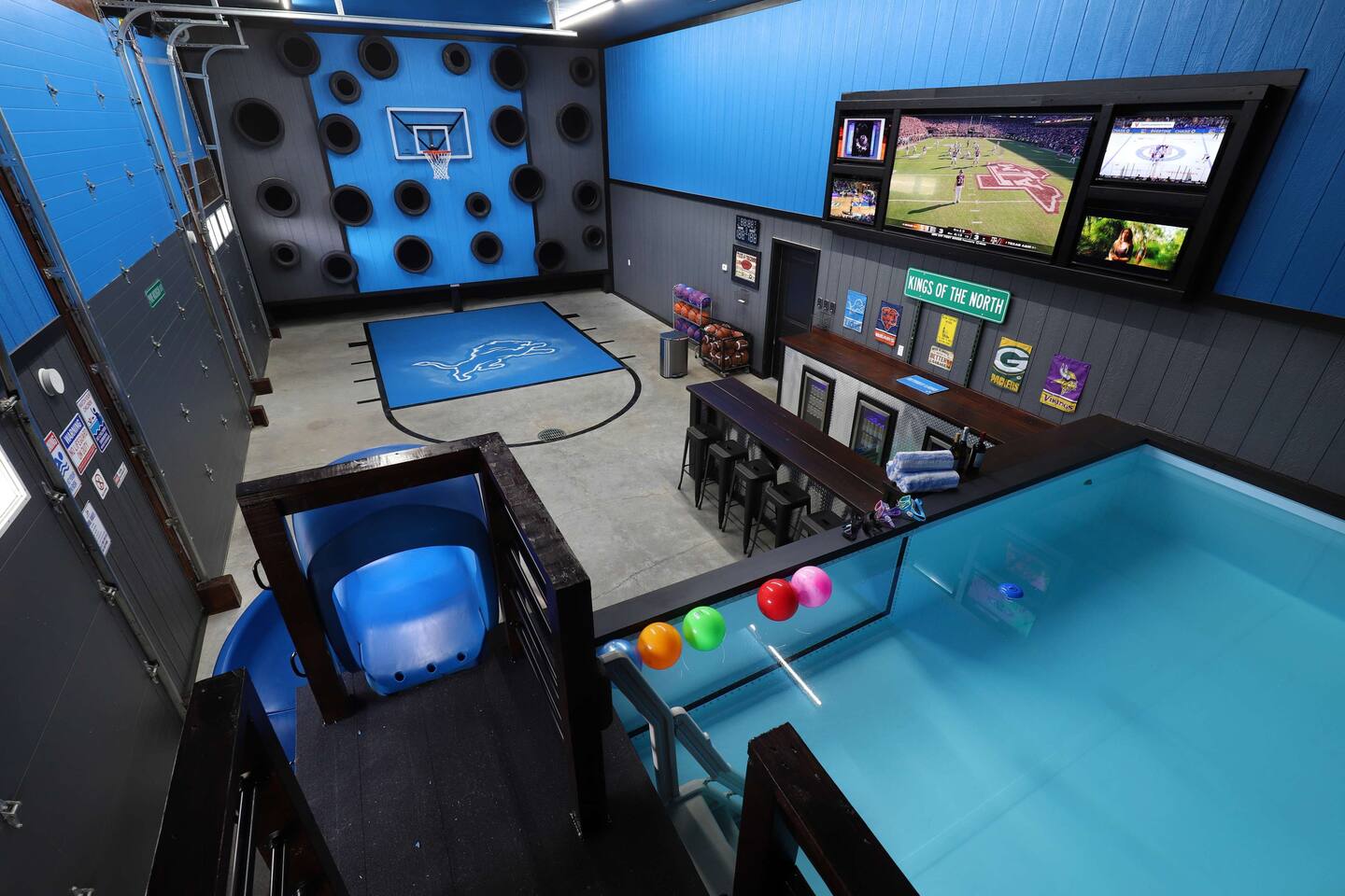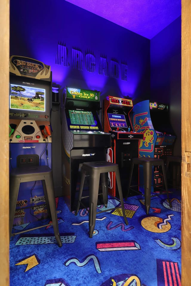 This one-of-a-kind Michigan retreat redefines group getaways with year-round fun. Enjoy a private indoor pool with a see-thru window + dual swim-up/sports bar with 5 TVs, right next to the Basketball Court + Toss-A-Touchdown Wall. Hit the putting green, arcade, hot tub, or head to the Wiffleball Stadium with a home run fence, scoreboard + dugouts. With 5,000+ SQ FT, 6 BR's/3 BA's, 20-30 guests, this 2.5-acre paradise is one of Michigan’s most unique + immersive experiences—book your spot today!