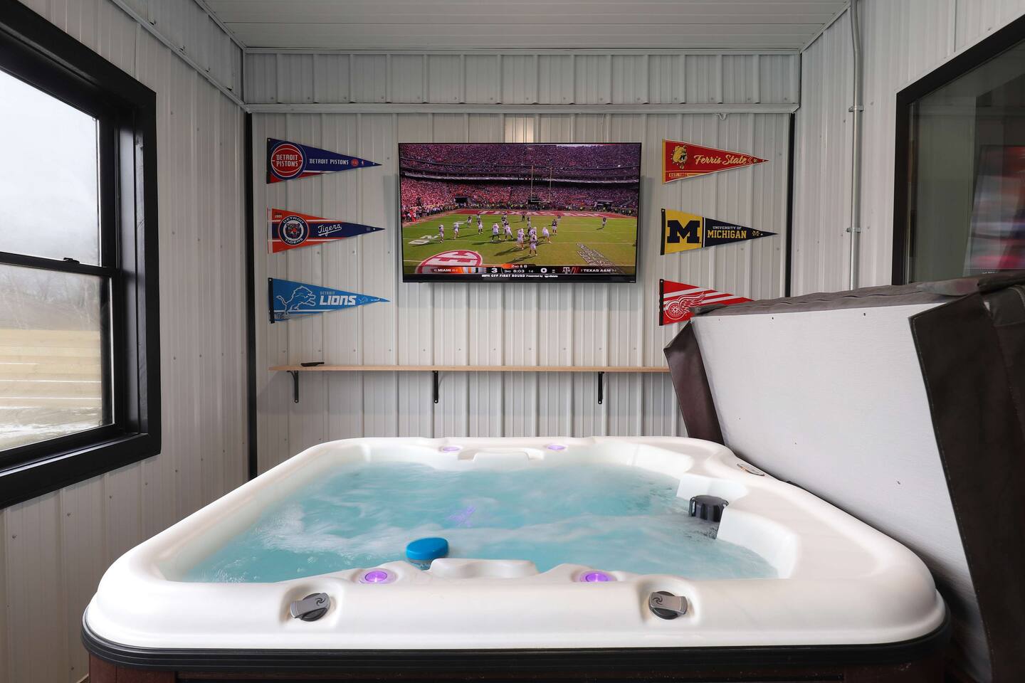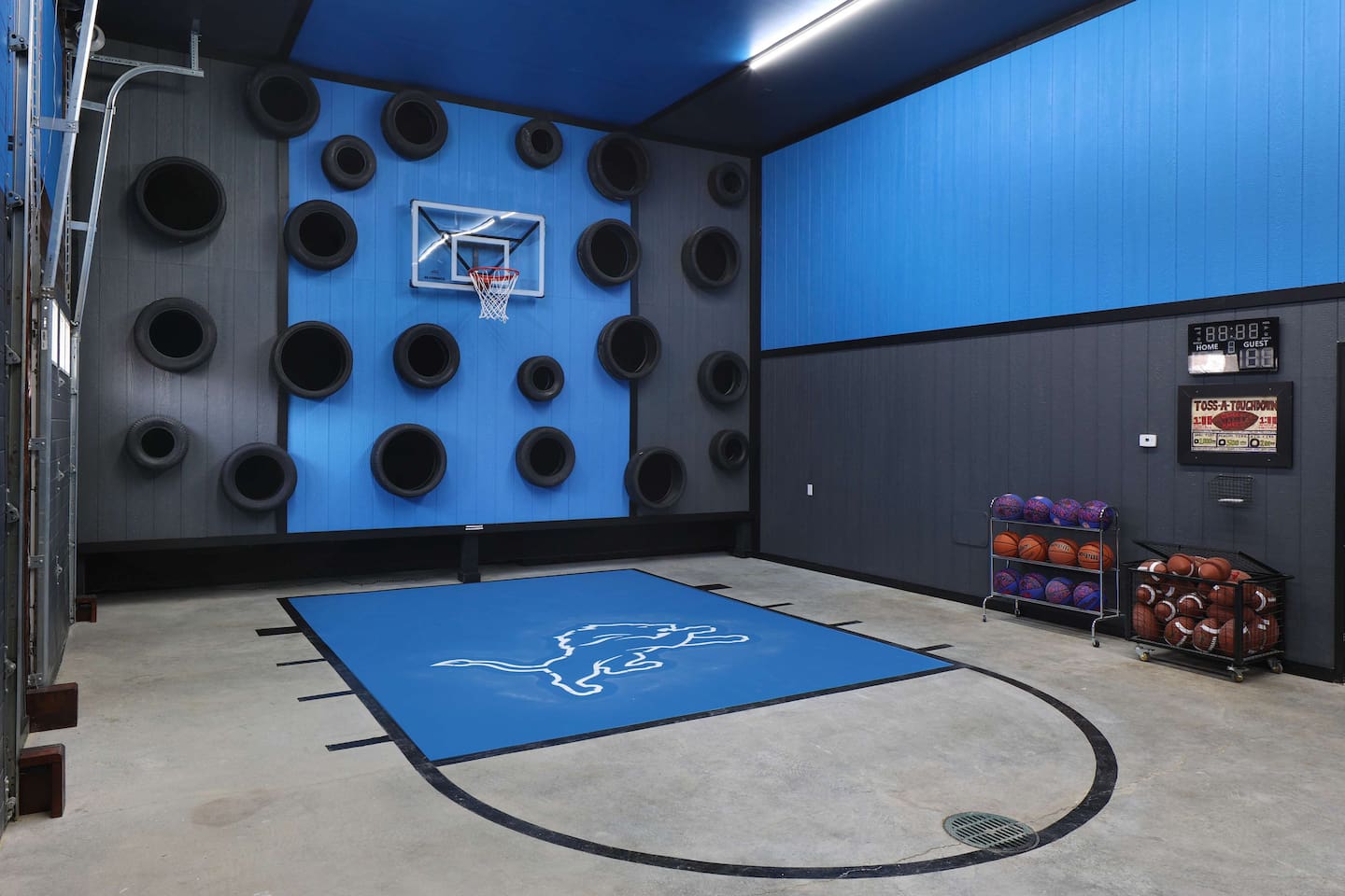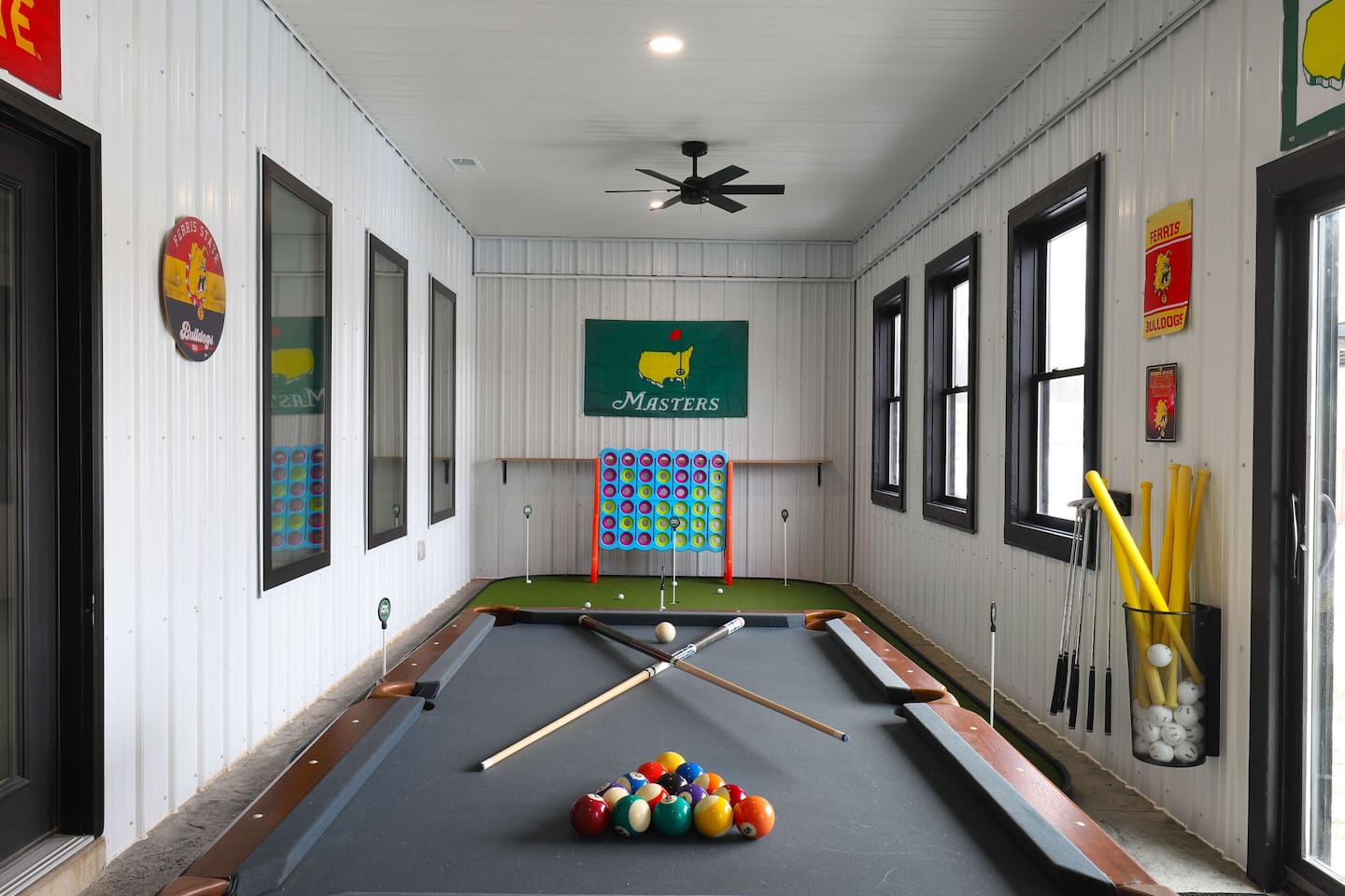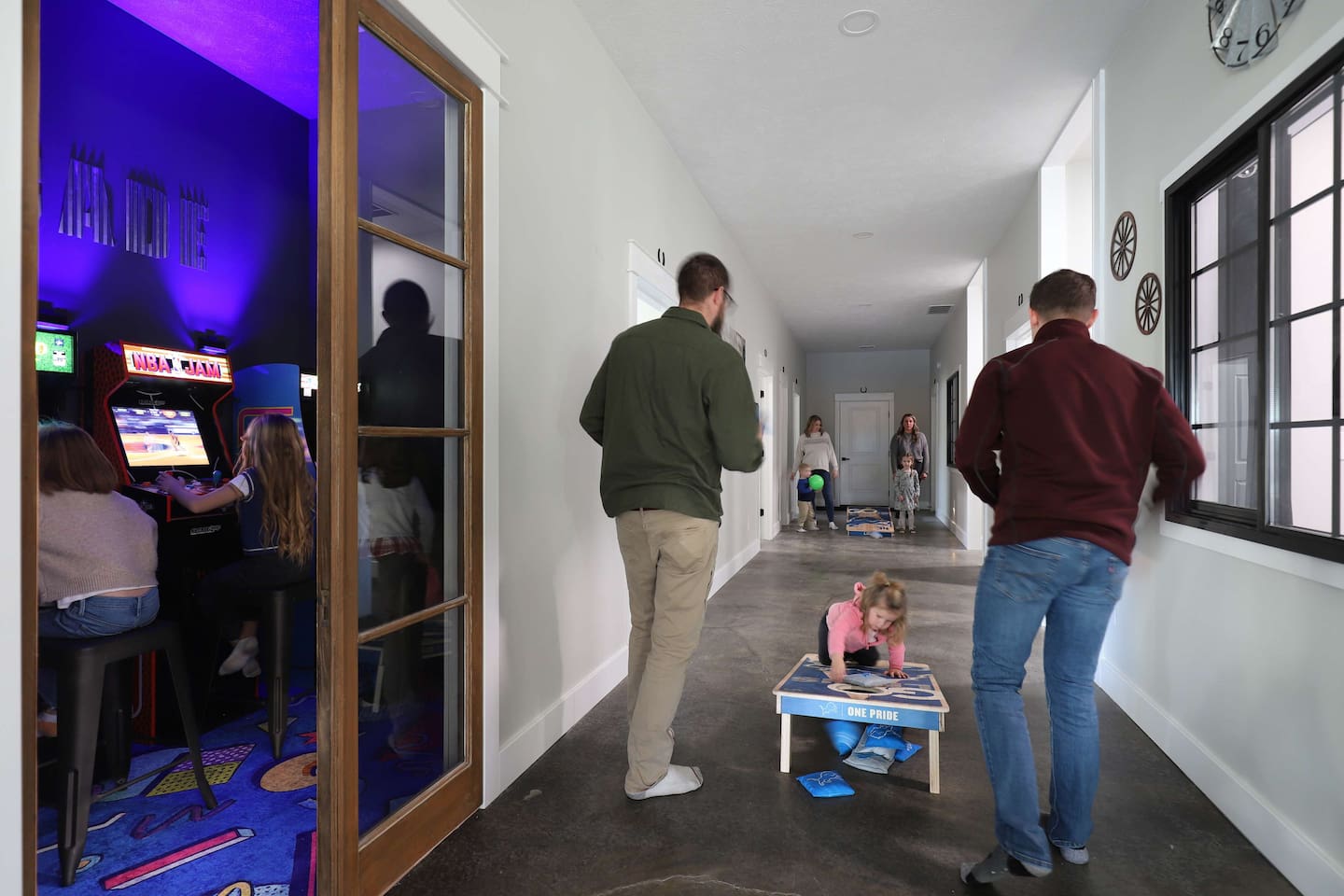 This one-of-a-kind Michigan retreat redefines group getaways with year-round fun. Enjoy a private indoor pool with a see-thru window + dual swim-up/sports bar with 5 TVs, right next to the Basketball Court + Toss-A-Touchdown Wall. Hit the putting green, arcade, hot tub, or head to the Wiffleball Stadium with a home run fence, scoreboard + dugouts. With 5,000+ SQ FT, 6 BR's/3 BA's, 20-30 guests, this 2.5-acre paradise is one of Michigan’s most unique + immersive experiences—book your spot today!