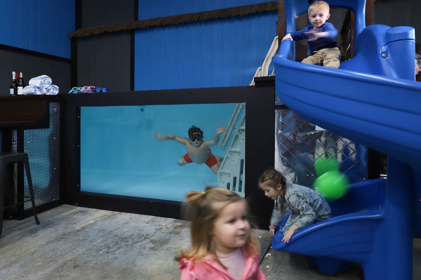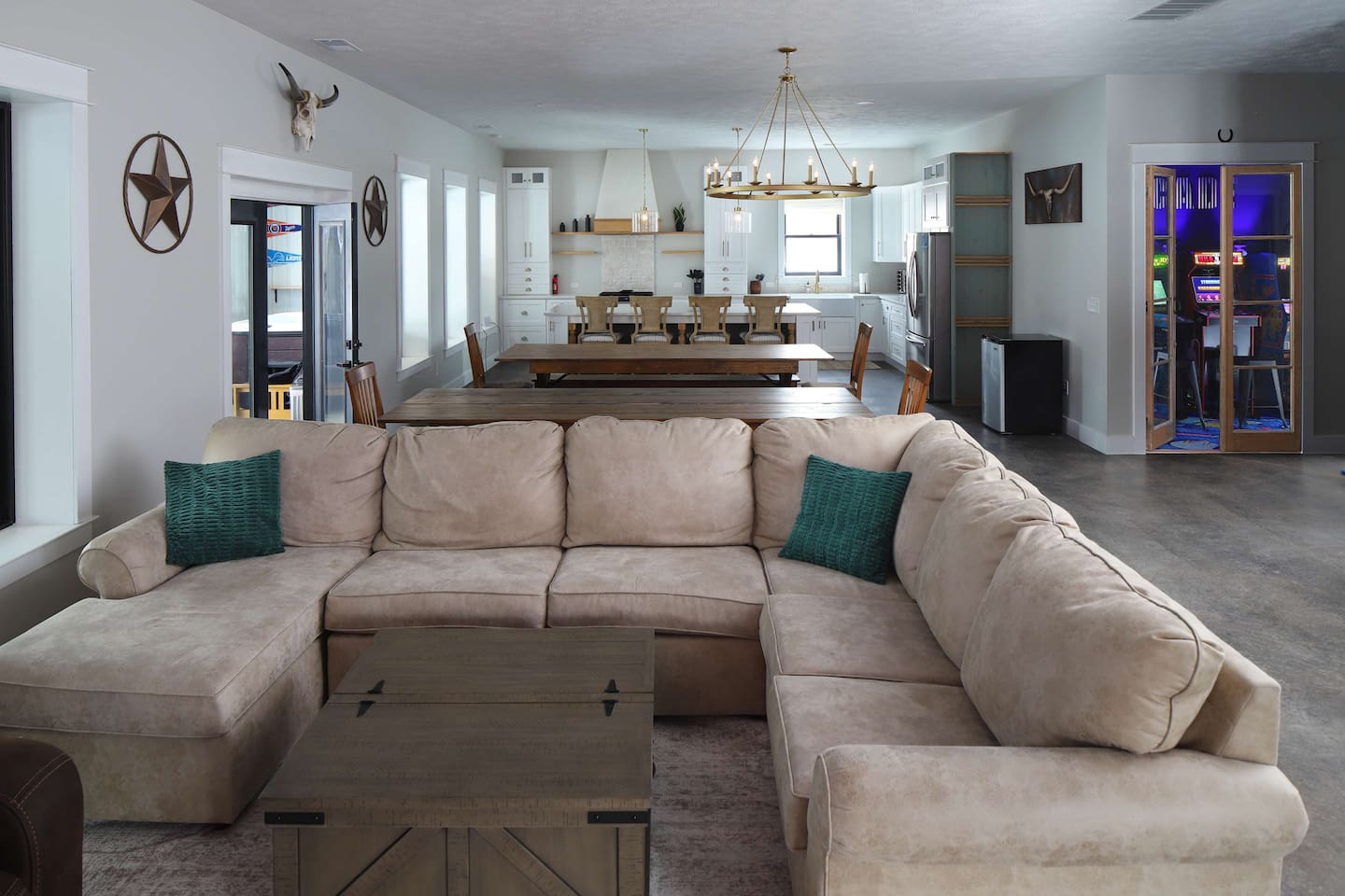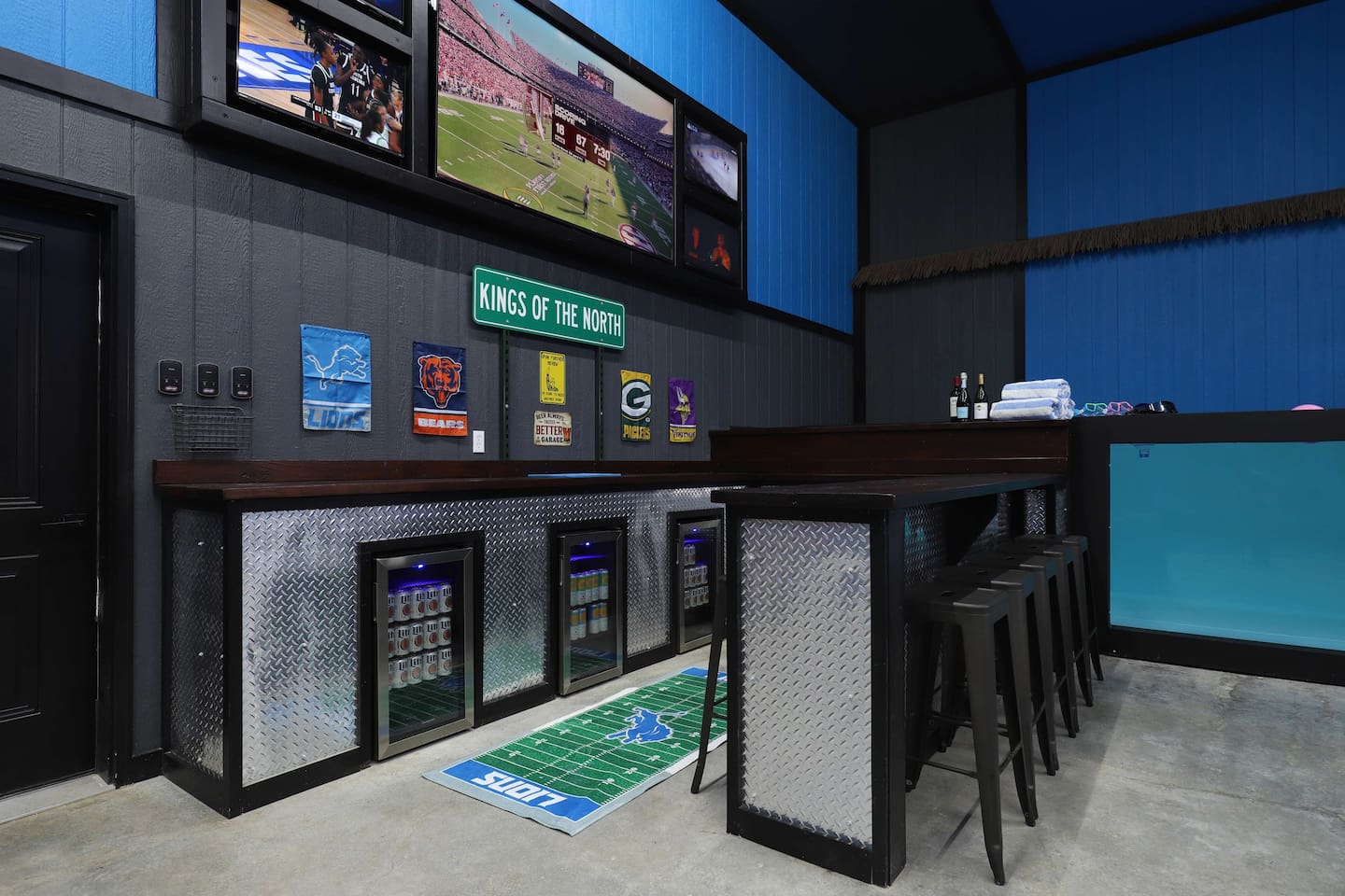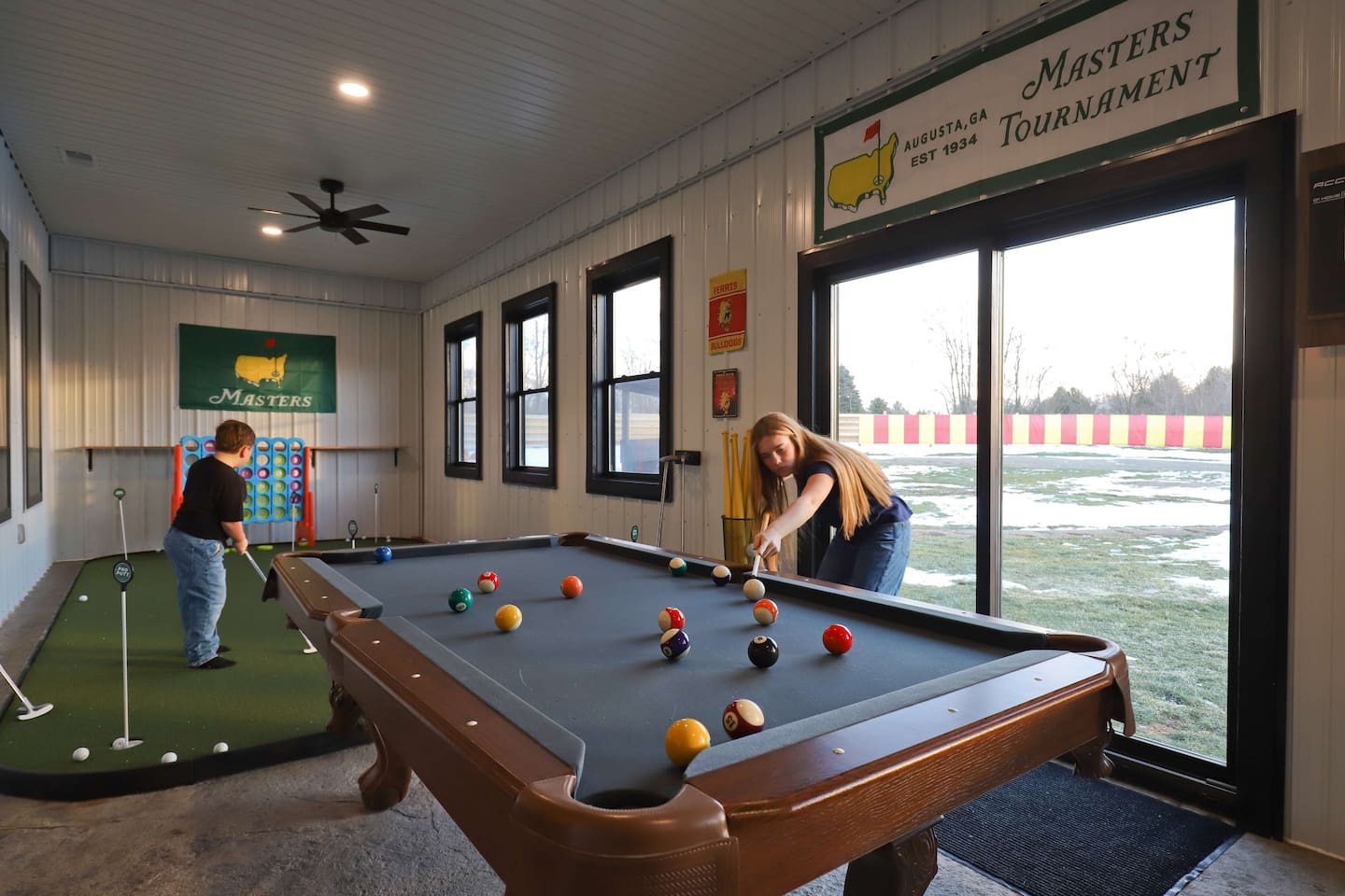 This one-of-a-kind Michigan retreat redefines group getaways with year-round fun. Enjoy a private indoor pool with a see-thru window + dual swim-up/sports bar with 5 TVs, right next to the Basketball Court + Toss-A-Touchdown Wall. Hit the putting green, arcade, hot tub, or head to the Wiffleball Stadium with a home run fence, scoreboard + dugouts. With 5,000+ SQ FT, 6 BR's/3 BA's, 20-30 guests, this 2.5-acre paradise is one of Michigan’s most unique + immersive experiences—book your spot today!