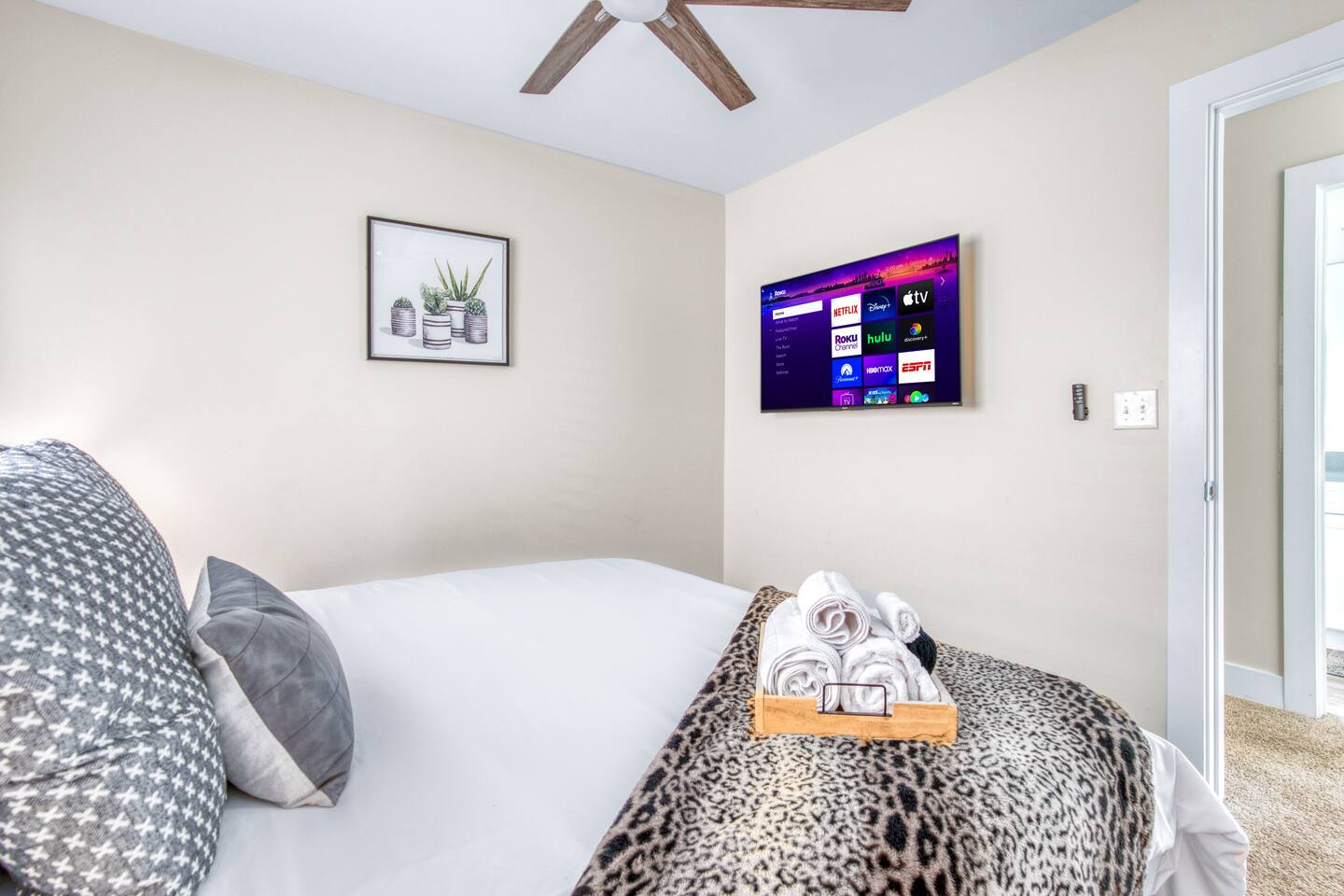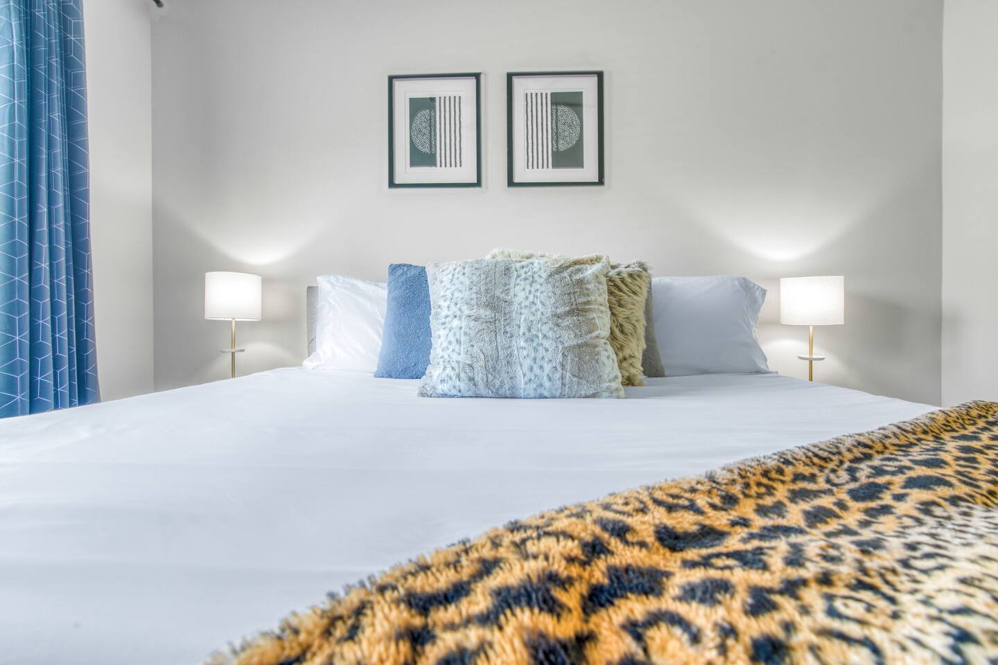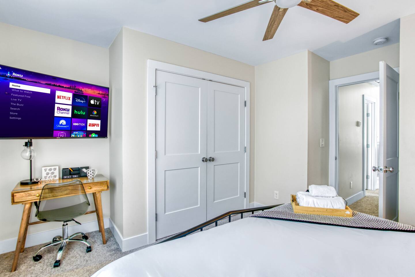 Three luxurious, uniquely curated bedrooms all with bedding and smart TVs (3 king beds, 1 queen air mattress).