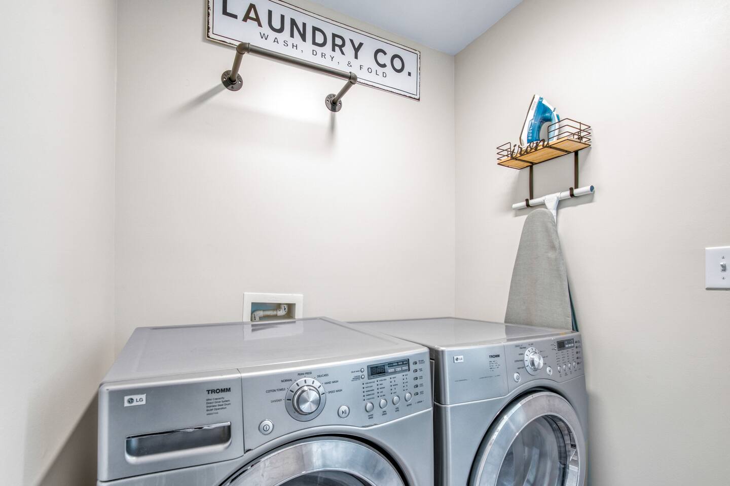 Laundry area with a washer and dryer and complimentary detergent, providing convenience and comfort during your stay.