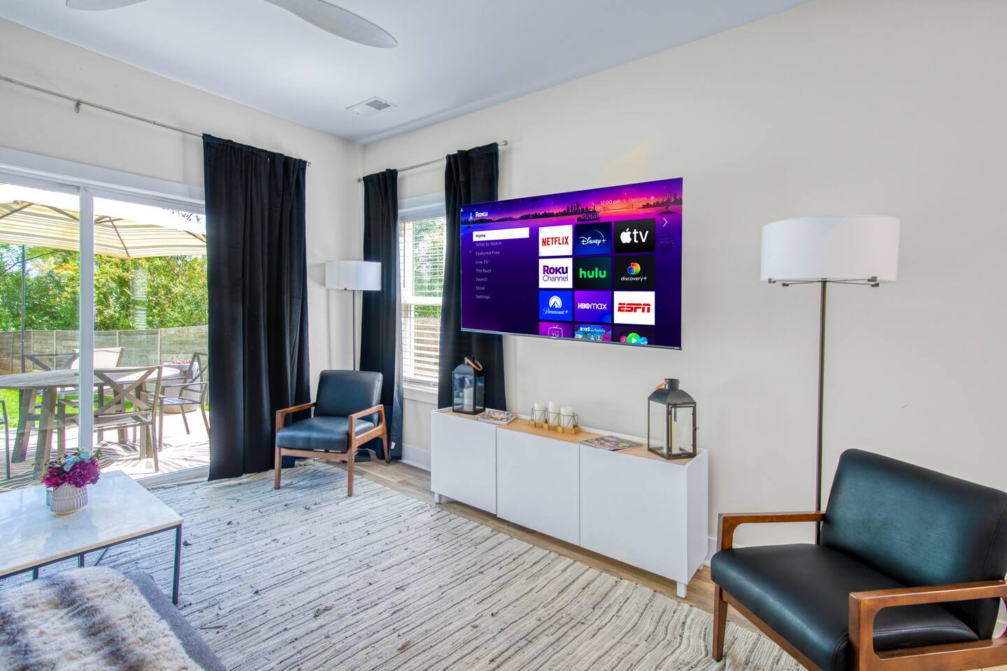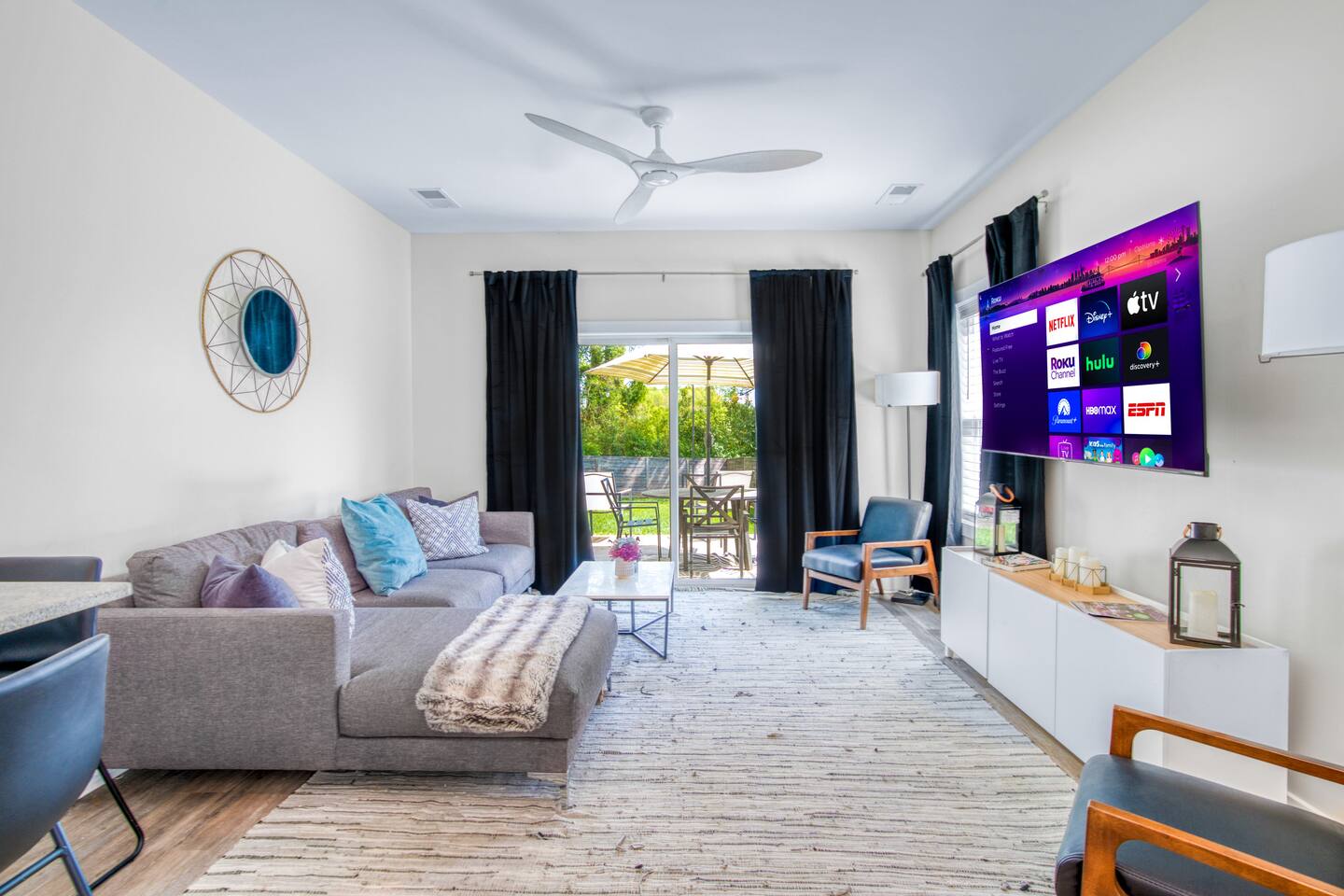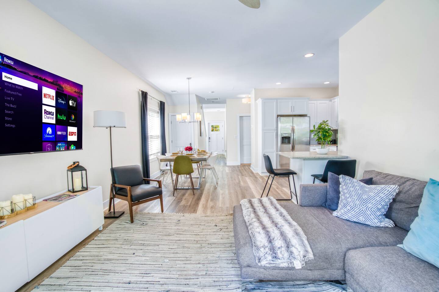 ☀️Open living room w/ lots of comfy seating & 55" smart TV