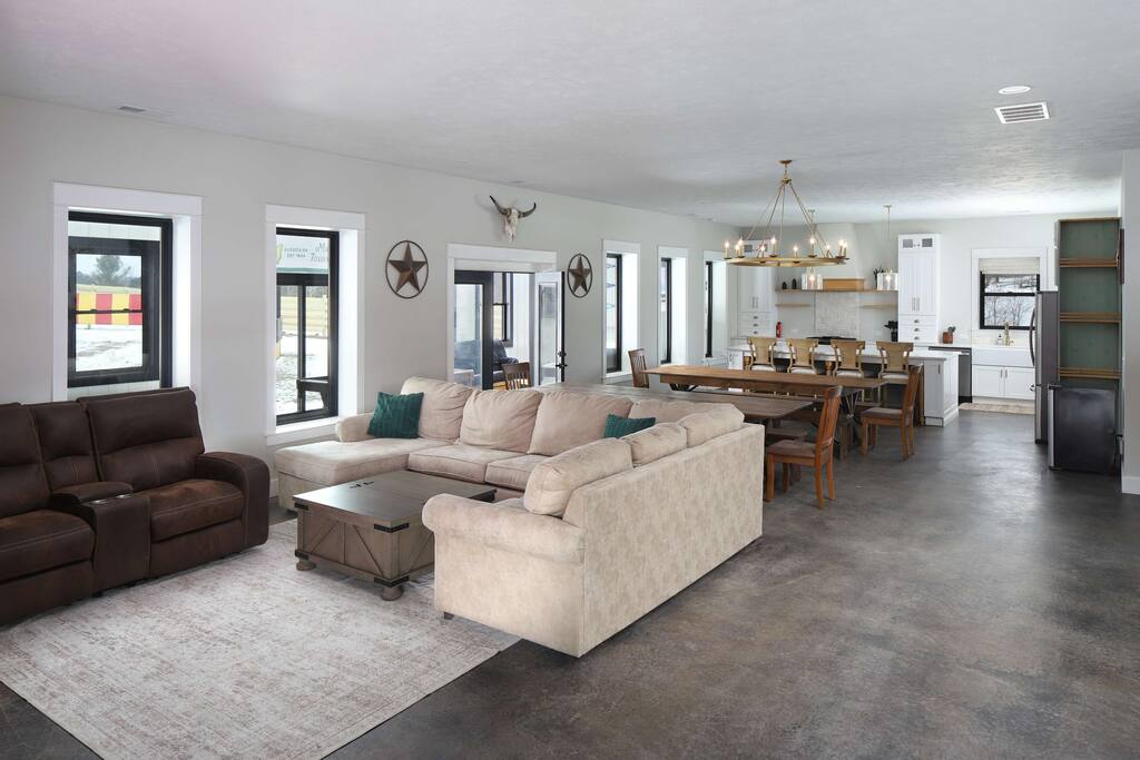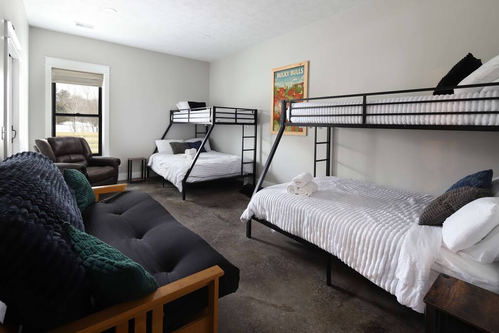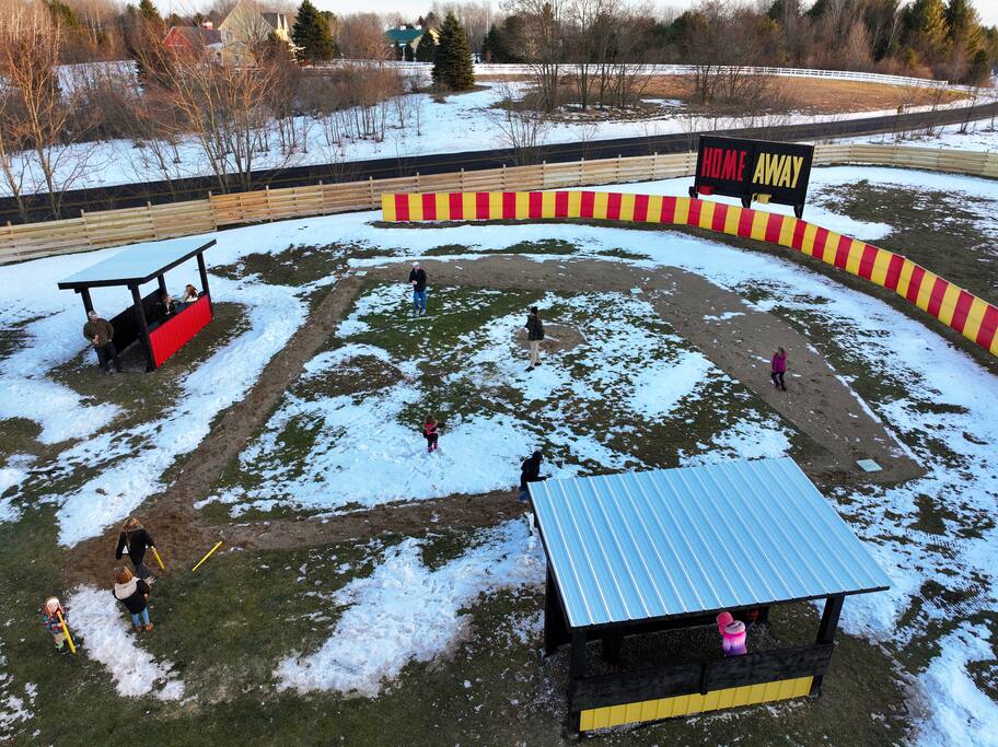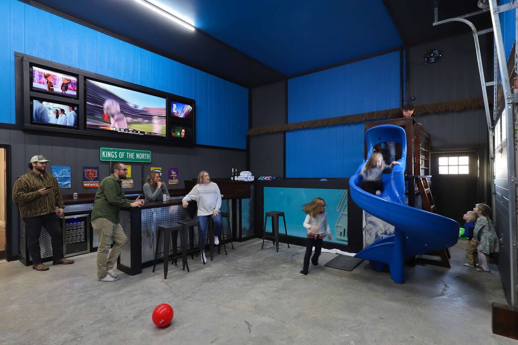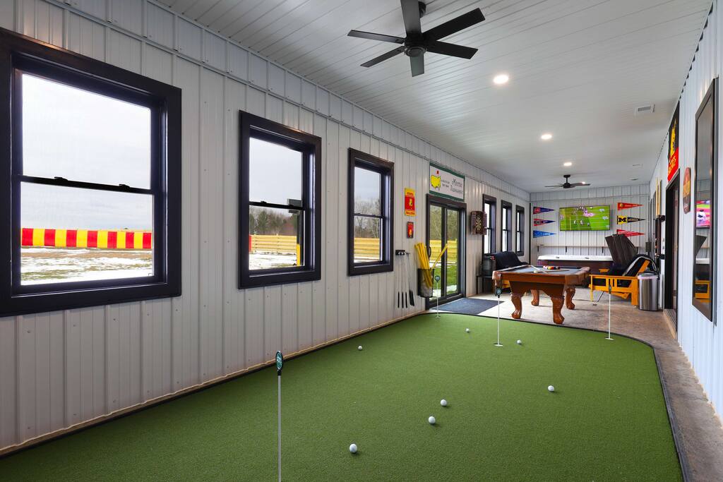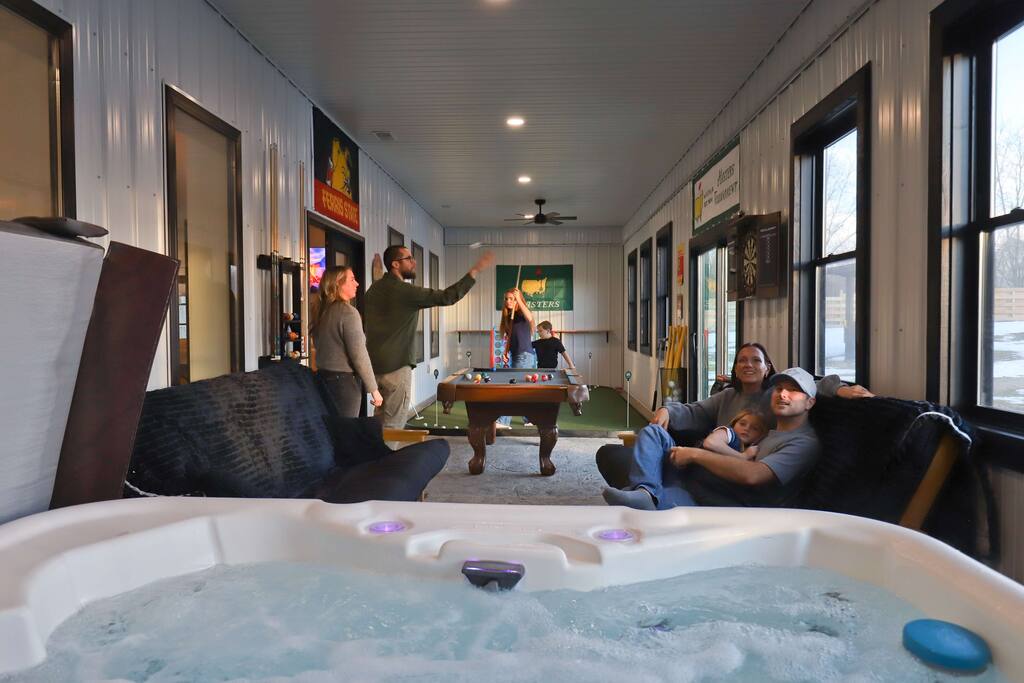 This one-of-a-kind Michigan retreat redefines group getaways with year-round fun. Enjoy a private indoor pool with a see-thru window + dual swim-up/sports bar with 5 TVs, right next to the Basketball Court + Toss-A-Touchdown Wall. Hit the putting green, arcade, hot tub, or head to the Wiffleball Stadium with a home run fence, scoreboard + dugouts. With 5,000+ SQ FT, 6 BR's/3 BA's, 20-30 guests, this 2.5-acre paradise is one of Michigan’s most unique + immersive experiences—book your spot today!