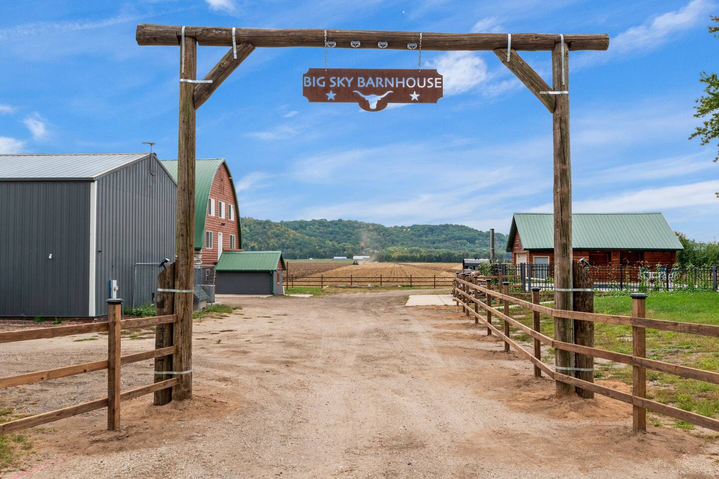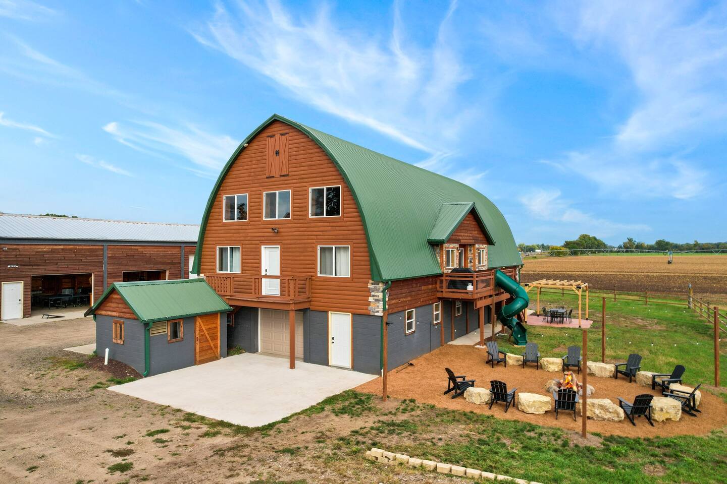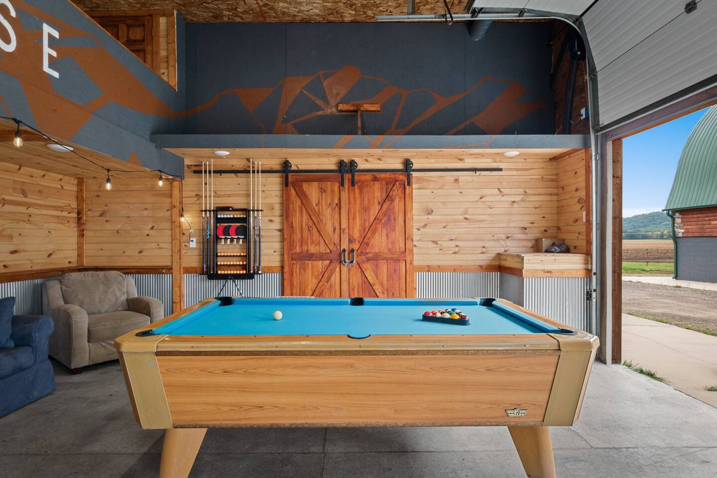 Big Sky Barnhouse…where historic meets extraordinary. This iconic barn sleeps 16+ in 6 BRs, 4 floors, 7000 sqft. Equipped w/ a 9-Hole Indoor Mini-Golf Course + 2 Pools! Outdoor Pool + Indoor Pool w/ Sauna + Shower. Dual-Level Indoor Park/Playground w/ Slides, Hexagon Dome, Rock Climb, Tire Swings + more. Movie Theater w/ Balcony, Home Gym, Arcade, Billiards, PingPong, SkeeBall + Bball Bunk Room. Slide down from the deck to the Boulder Firepit + enjoy the breathtaking views of the Driftless Hills.