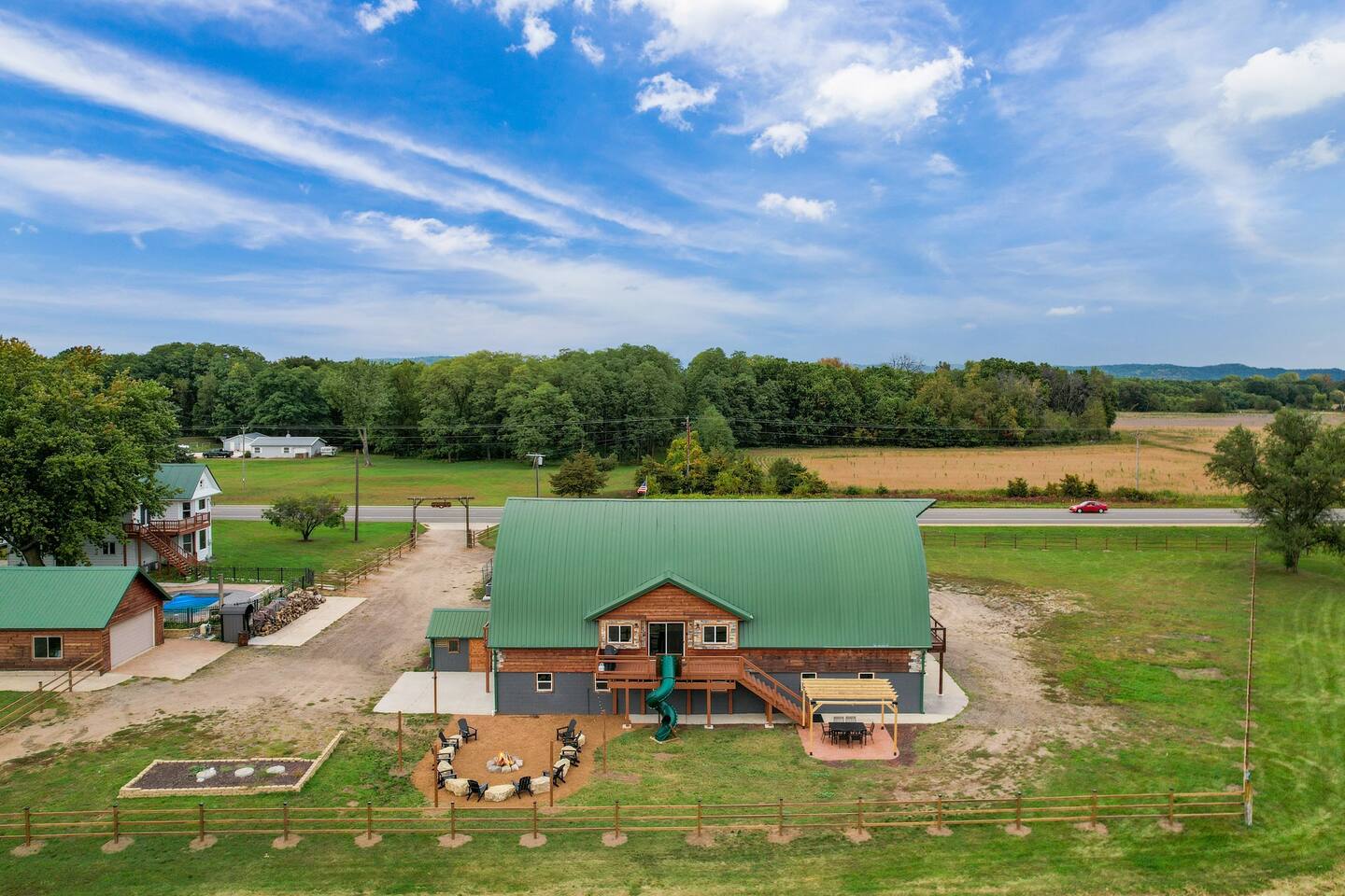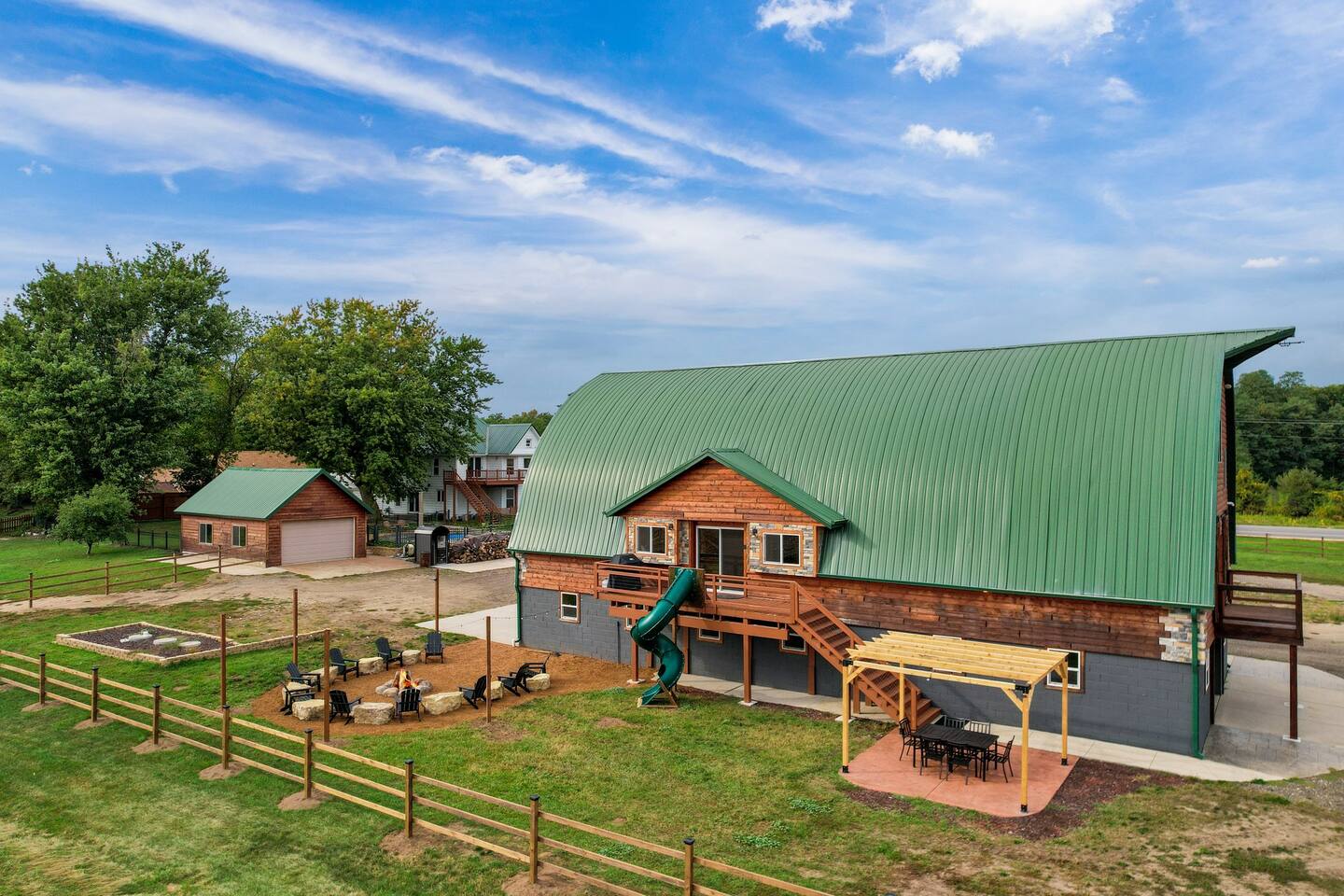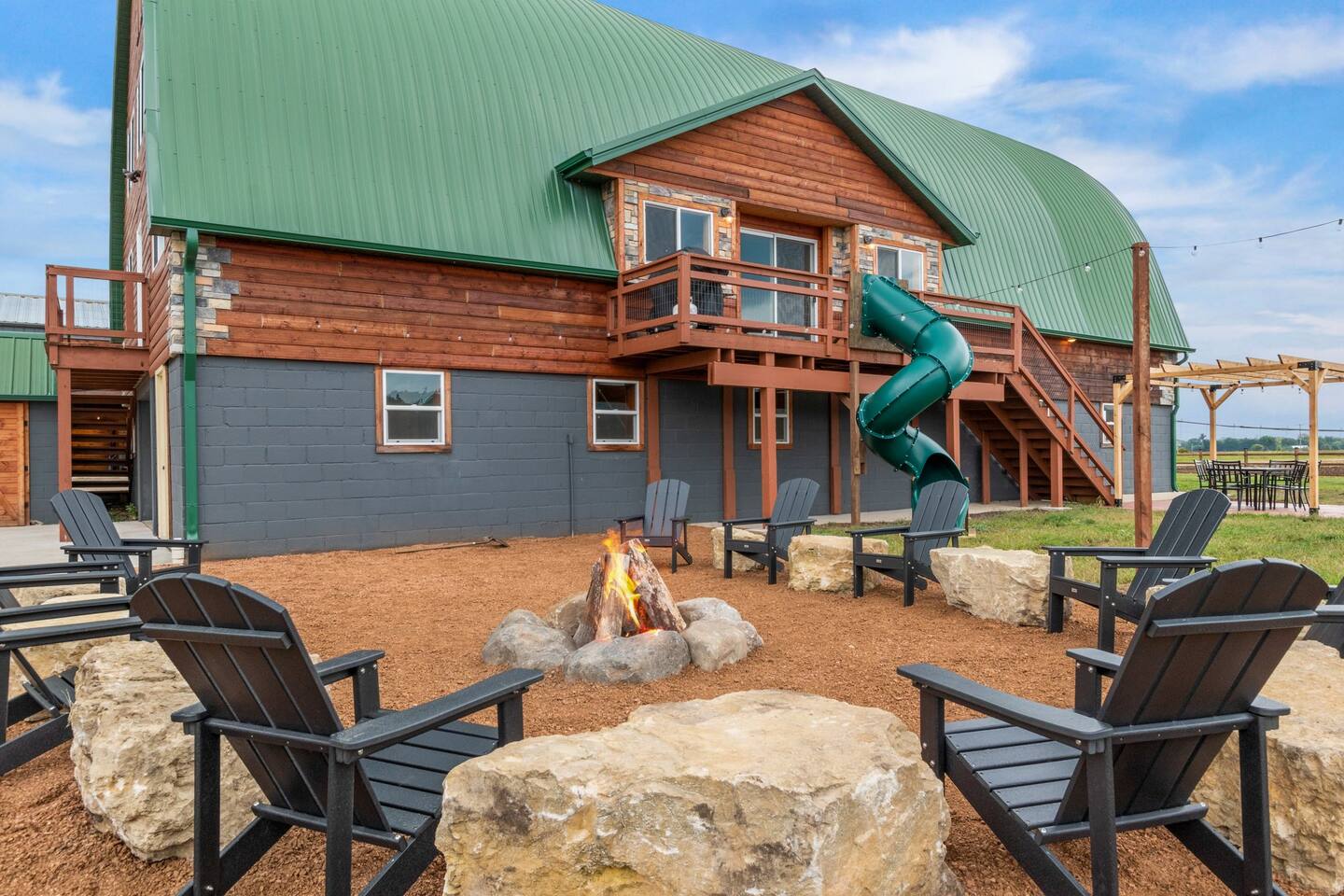 Big Sky Barnhouse…where historic meets extraordinary. This iconic barn sleeps 16+ in 6 BRs, 4 floors, 7000 sqft. Equipped w/ a 9-Hole Indoor Mini-Golf Course + 2 Pools! Outdoor Pool + Indoor Pool w/ Sauna + Shower. Dual-Level Indoor Park/Playground w/ Slides, Hexagon Dome, Rock Climb, Tire Swings + more. Movie Theater w/ Balcony, Home Gym, Arcade, Billiards, PingPong, SkeeBall + Bball Bunk Room. Slide down from the deck to the Boulder Firepit + enjoy the breathtaking views of the Driftless Hills.