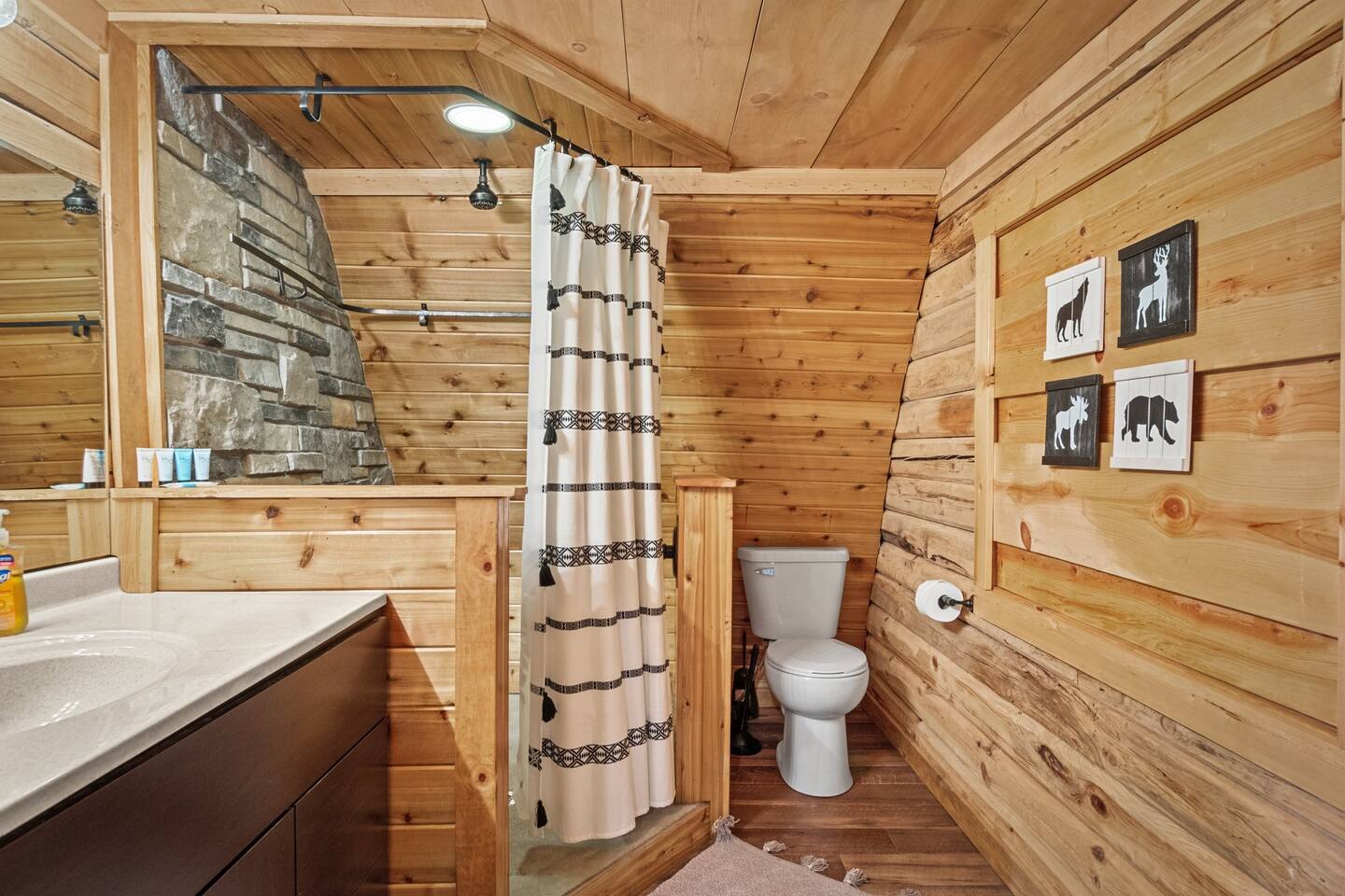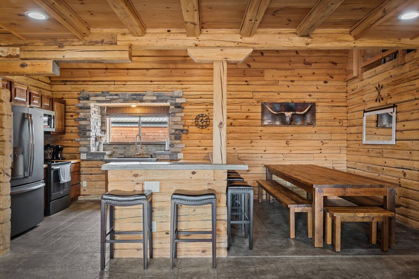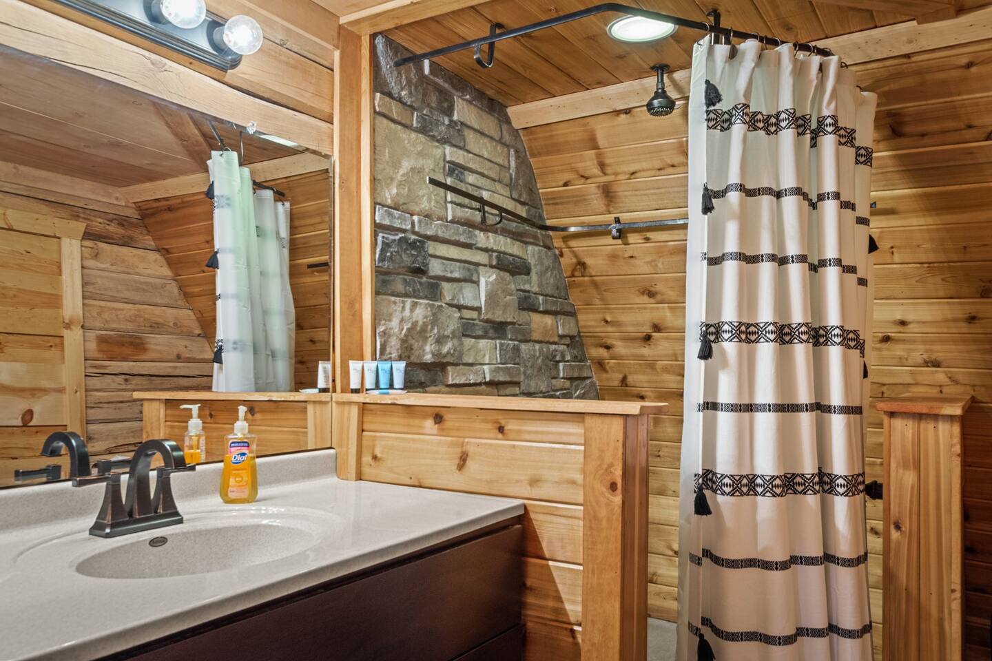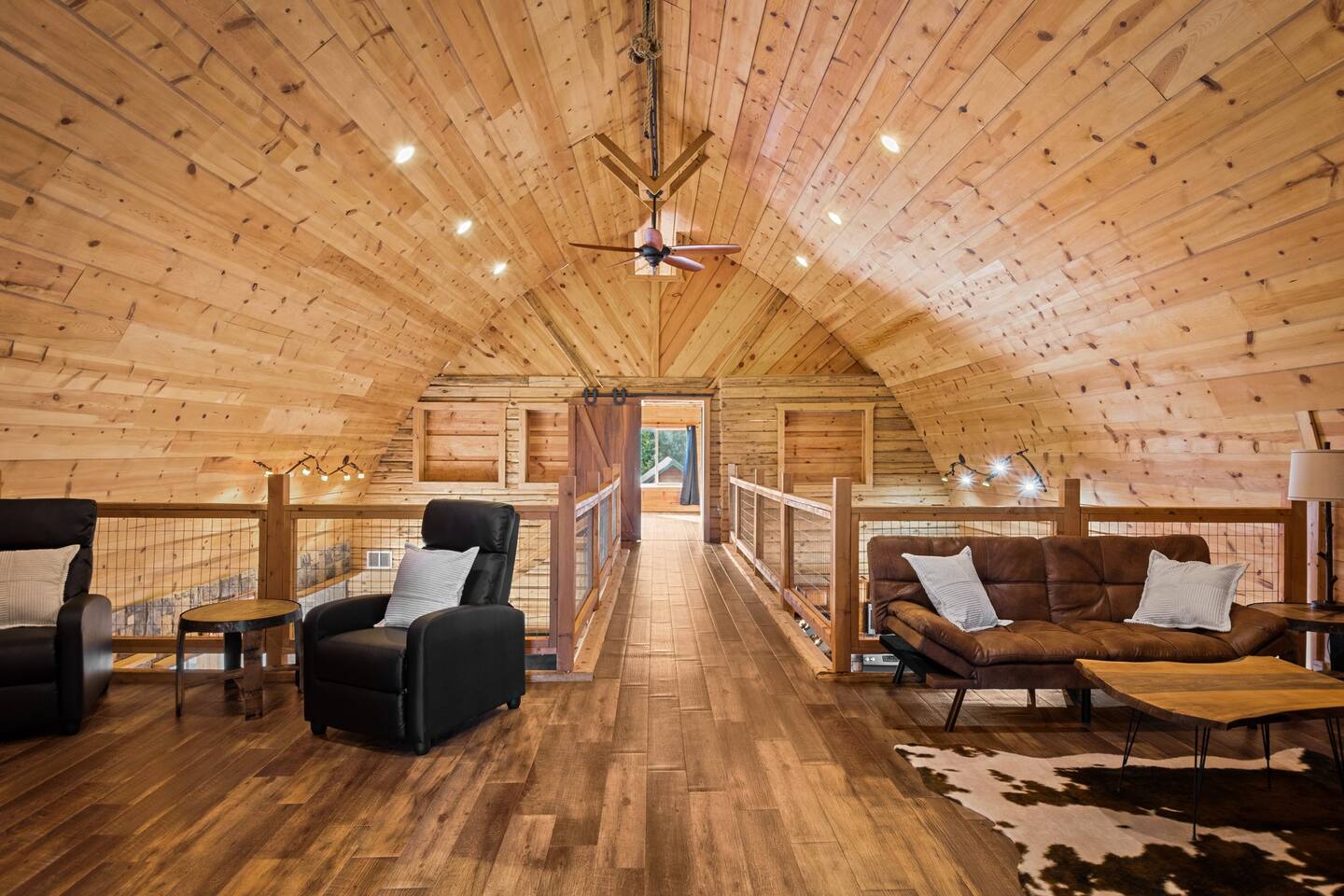 ★ The barnhouse is perfect for large group gatherings. There is also a full size futon and leather couch for additional sleeping space. There are 8 queen sized beds and 4 twin sized beds. 3 FULL bathrooms are in the barnhouse as well which include custom luxury stonework crafted by a local masonry expert