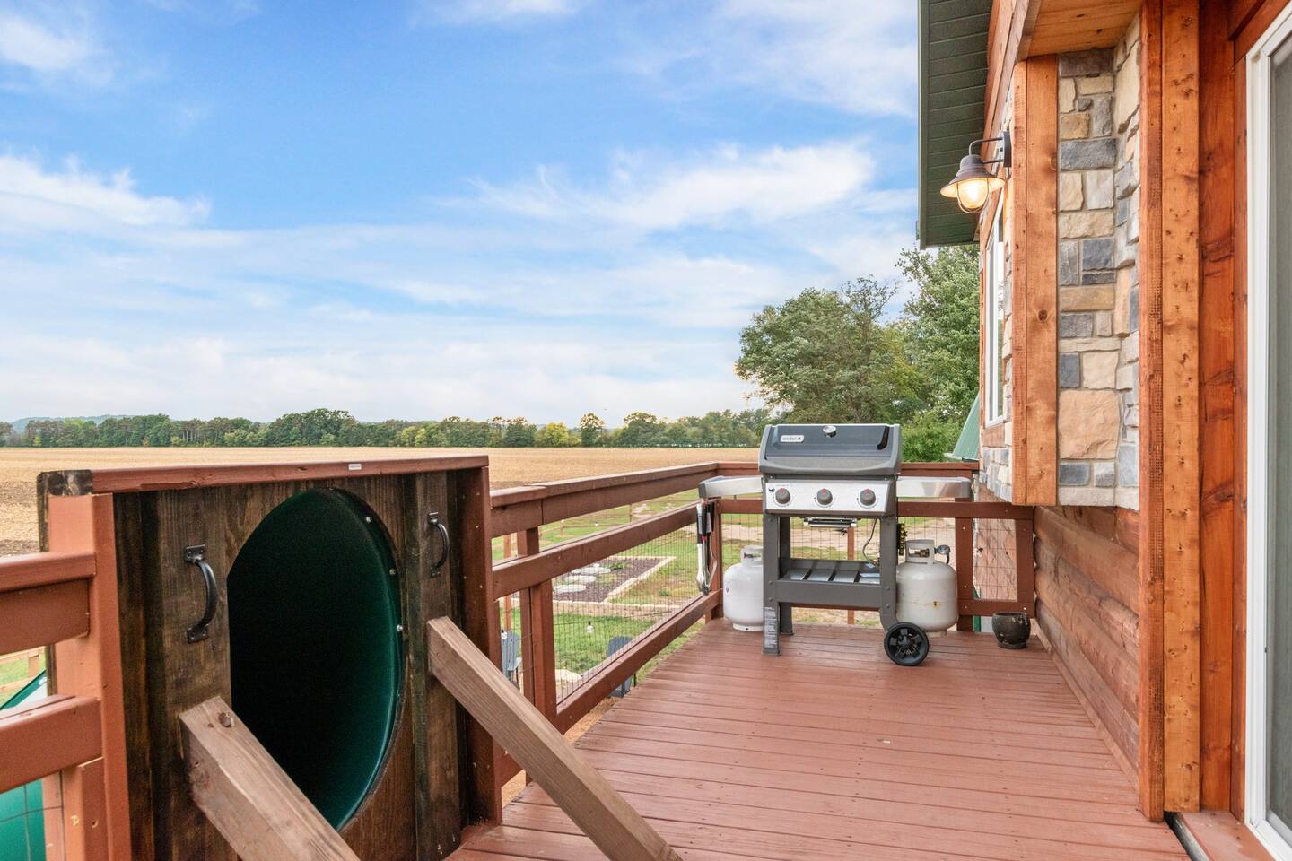 ★ The bonfire pit, patio, pergola, grill, and outdoor dining space is located on the south side of the barn next to the slide coming off the deck