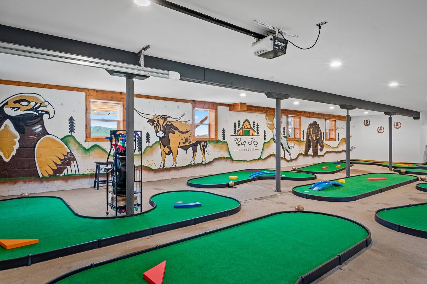 ★ The mini golf course has 9 holes and is located on the first floor of the barn, next to the lounge and arcade area. The arcade includes a SkeeBall machine, Ms Pac Man machine, NFL Blitz machine, PONG 2 seater machine, Marvel Themed Pinball machine, and a Wisconsin Badger 2 player Pop a Shot