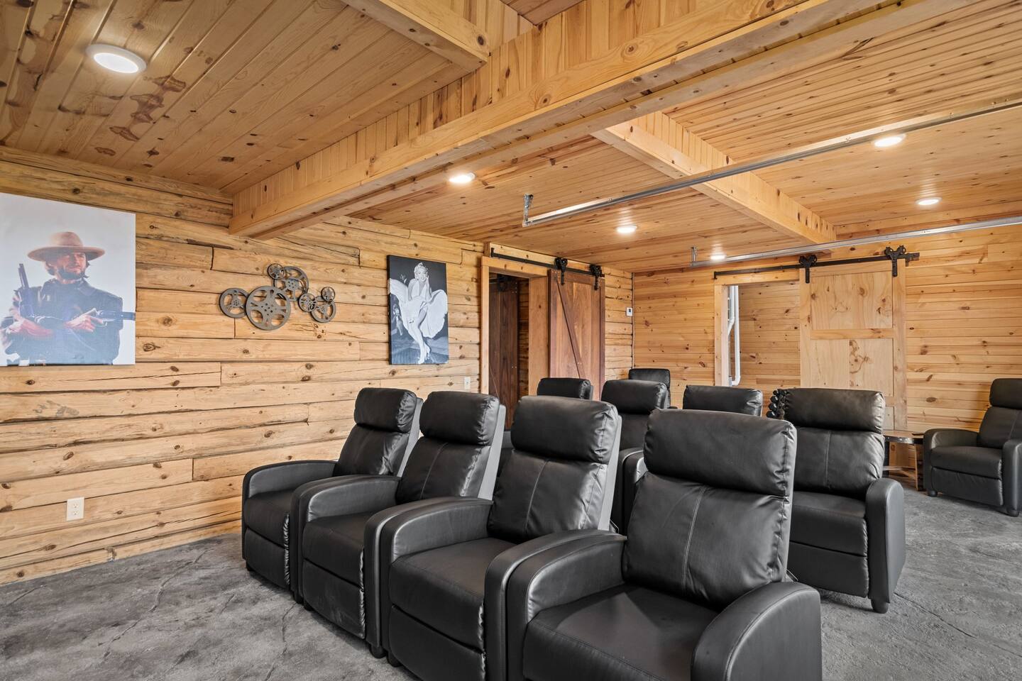 ★ The home theater includes a massive 100" flat screen smart TV with 12 comfy leather recliners for guest use