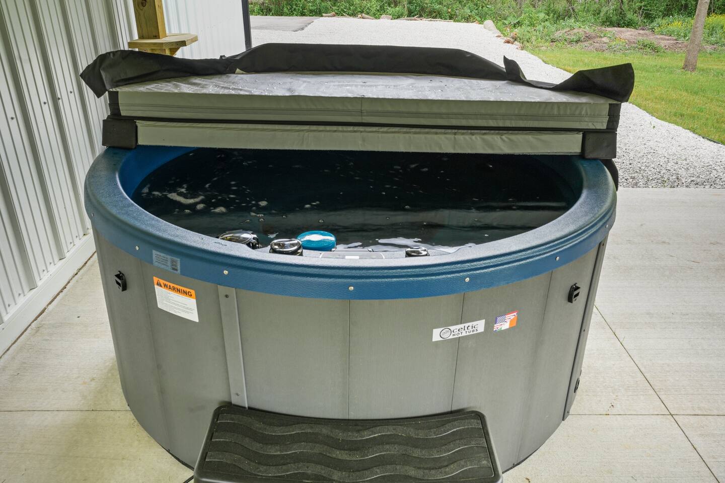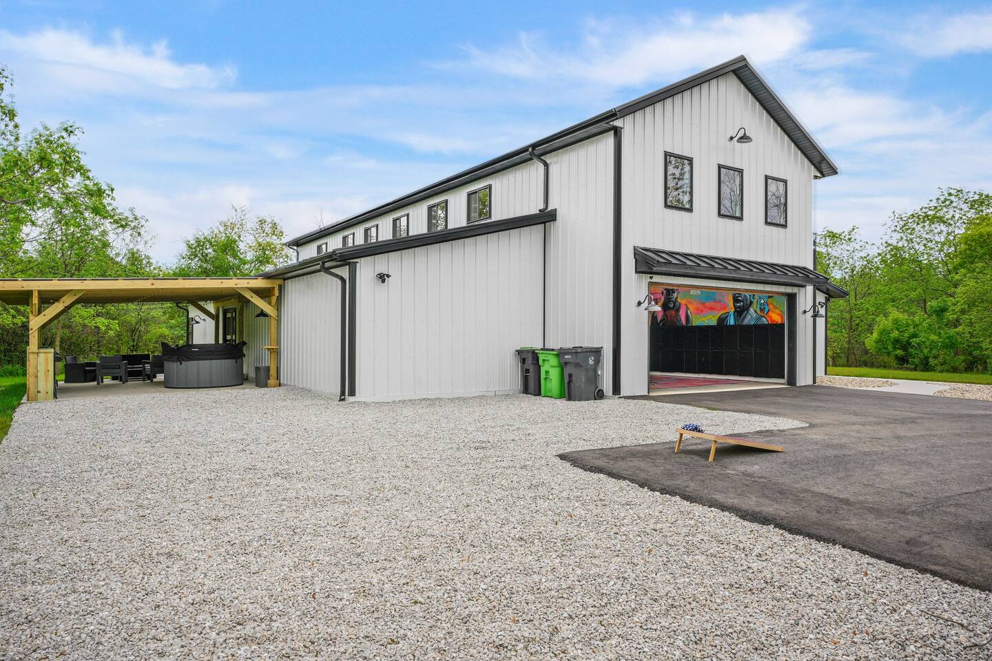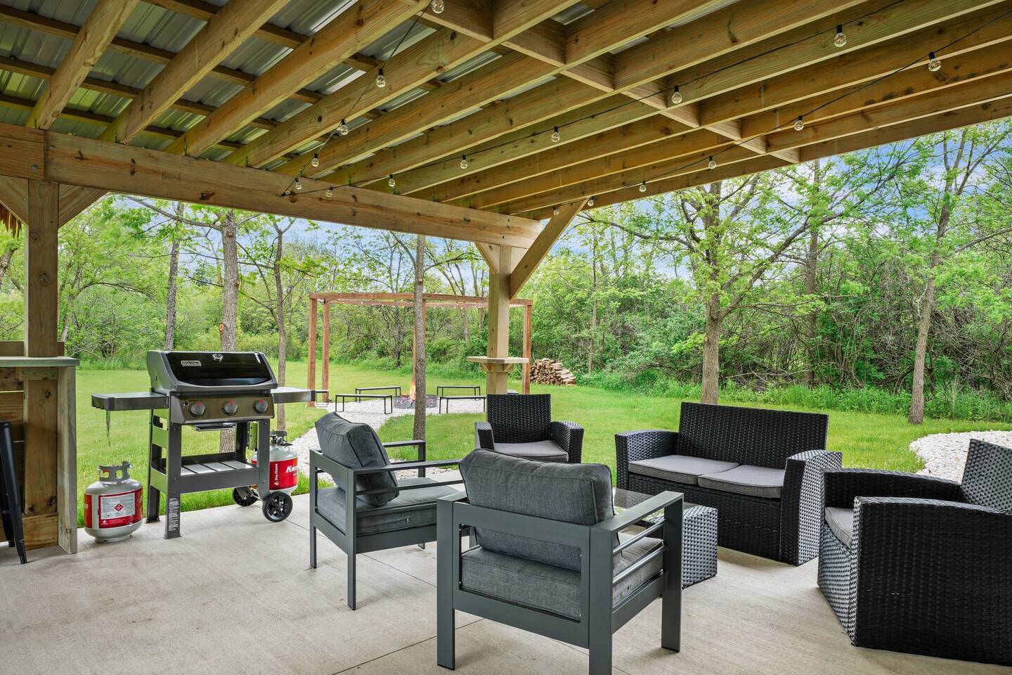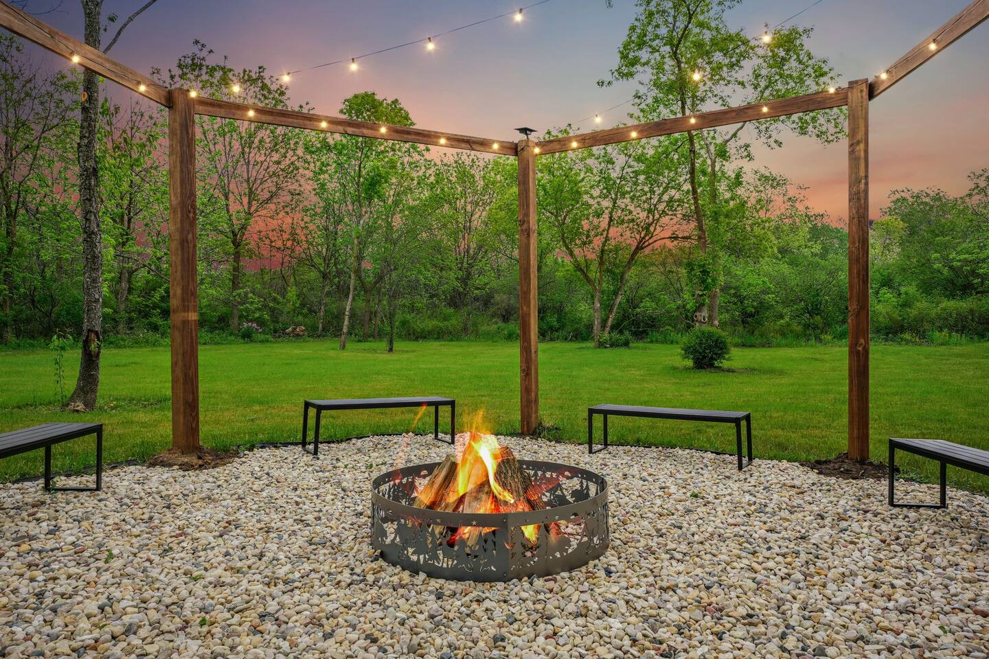 ★ The hot tub, fire pit, patio, covered pergola, grill, lounge, and outdoor dining space is located on the rear side of the barn before the backyard.