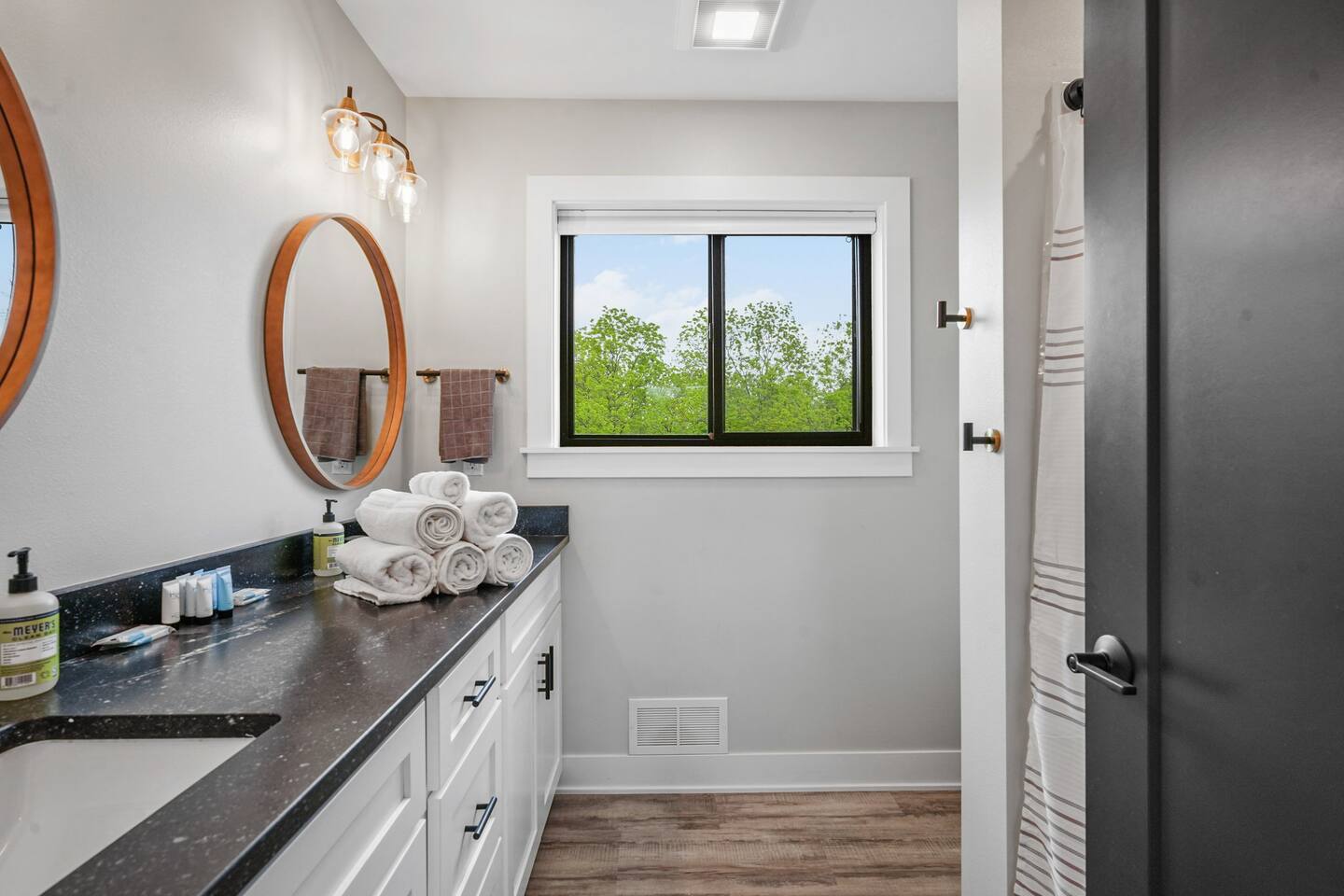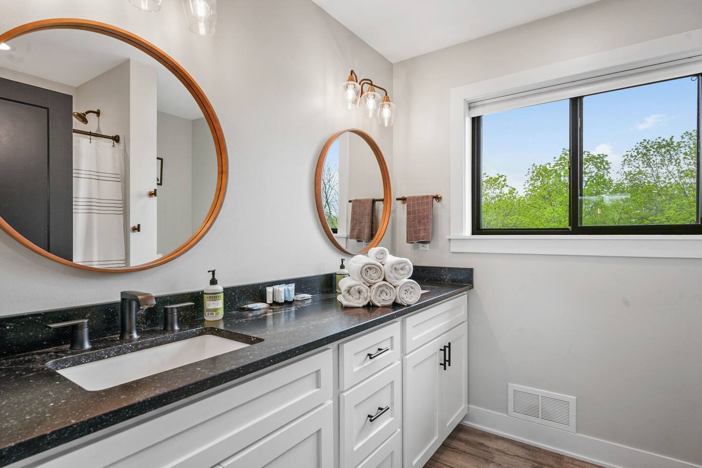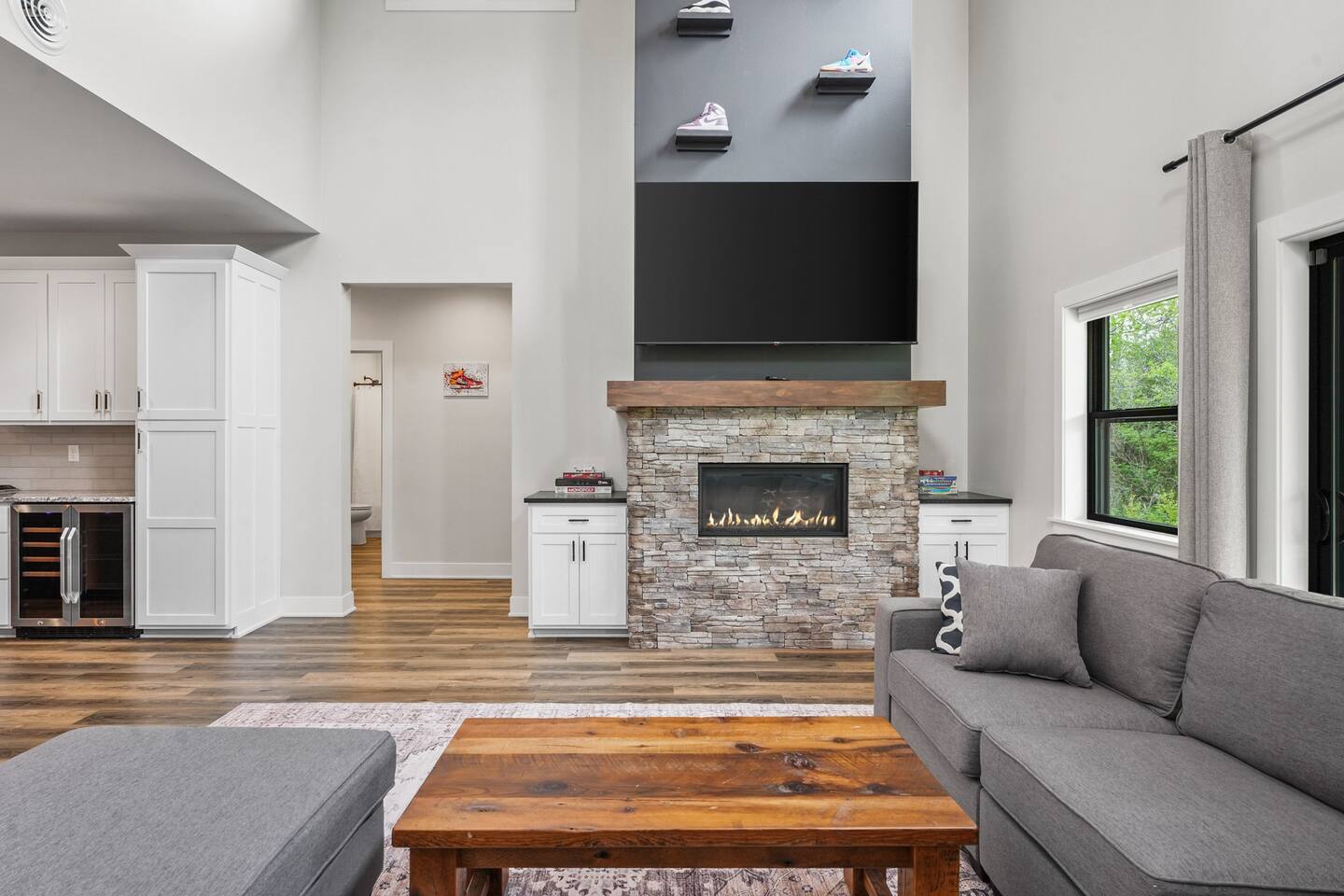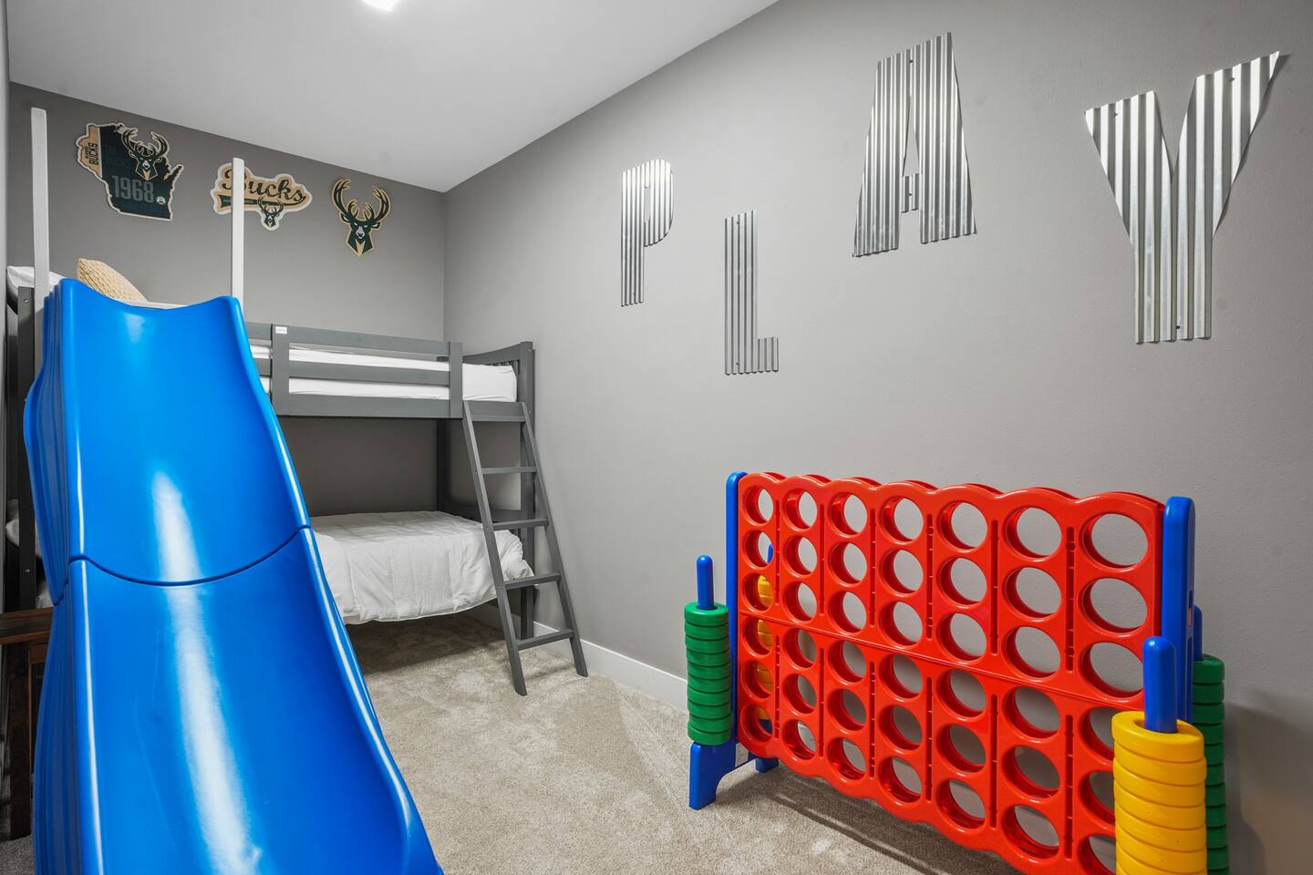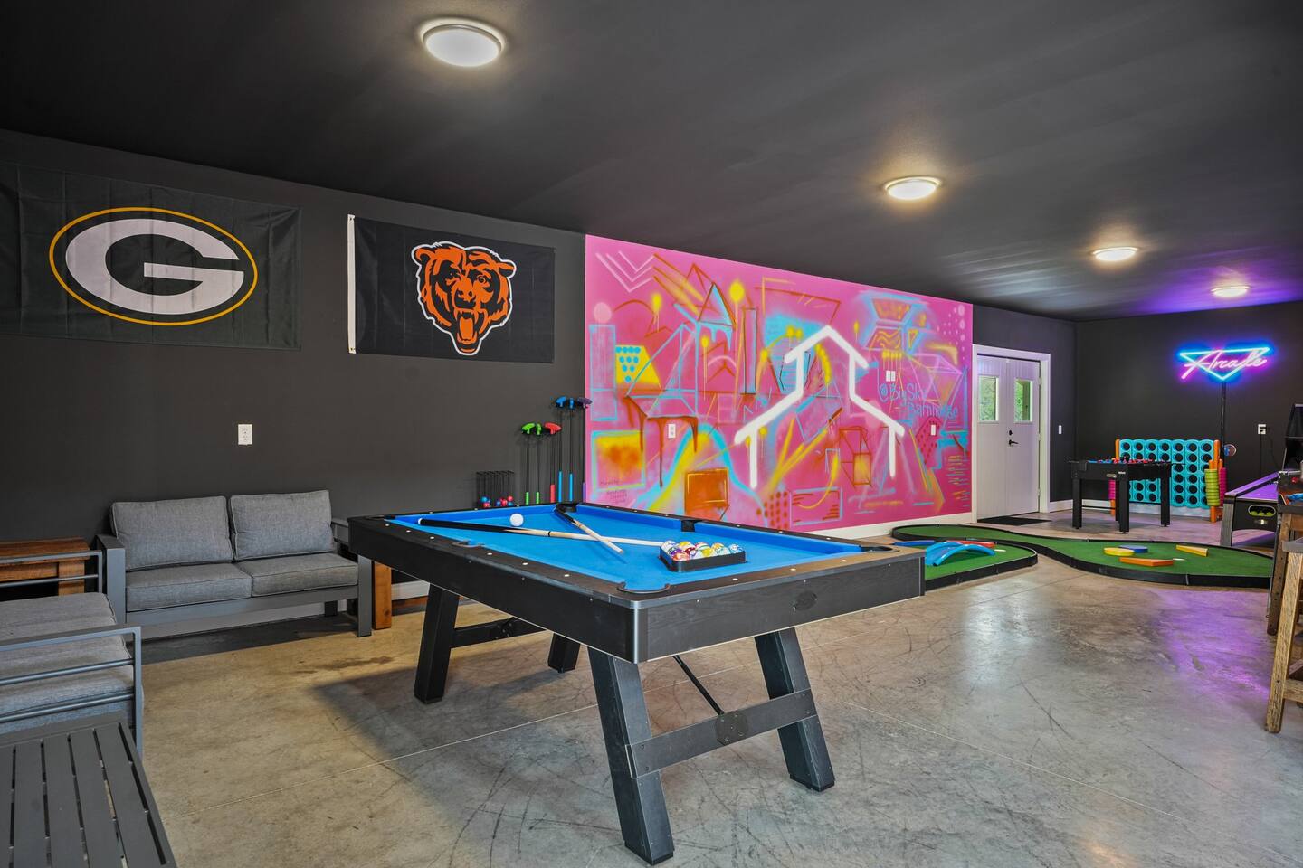 My friends and I had such a delightful weekend here. An excellent way to celebrate a birthday! Multiple TVs, the ability to watch a movie/show, the packers, and group games. A large kitchen with a deep sink, cooked multiple large meals a day while baking bread and cakes. A huge yard with a little loop for the dogs. Two bars to keep us entertained(one inside and one outside) with four mini fridges and a wine fridge. The perfect handful of activities like darts, cornhole, pool, a couple arcade games, and connect four to keep us all entertained. If it had rained we still would have been able to use everything because of the basketball court space. The fire pit is an extra nice touch just outside the backyard grill and bar area. The layout was excellent for the large group of people we had and we even took advantage of the hot tub. I couldn’t have been happier and neither could everyone who attended.