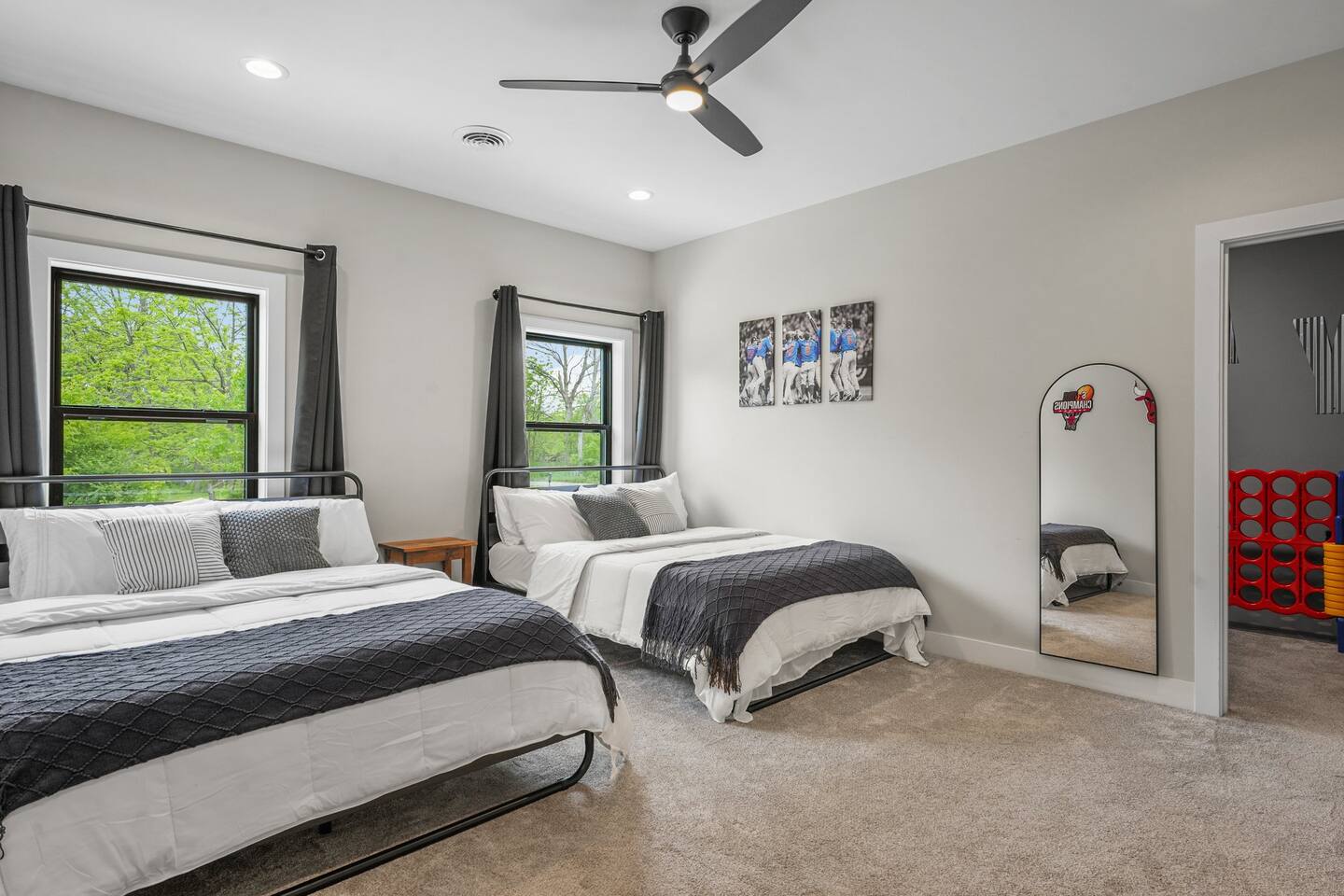 We had a great stay at Kyles place. There was so much to do at the Barndomium that we didn’t leave the place all weekend. We played yard games, cooked out, and enjoyed the firepit and game room bar all weekend. There were 12 adults in my group who all had plenty of space to sleep comfortably as well. This place was clean, private, spacious, and fun. Thanks for a great weekend.