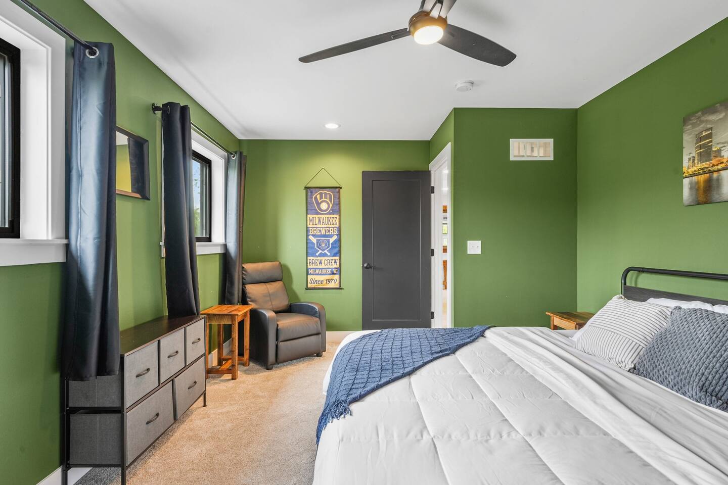 Such an amazing home for a large family gathering! The kids had a great time playing basketball and arcade games. The kitchen was large and well stocked to host our potluck. Plenty of room for everyone! I also loved the little trail behind the house. The home is very close to Lake Michigan and a great little beach in Racine.
