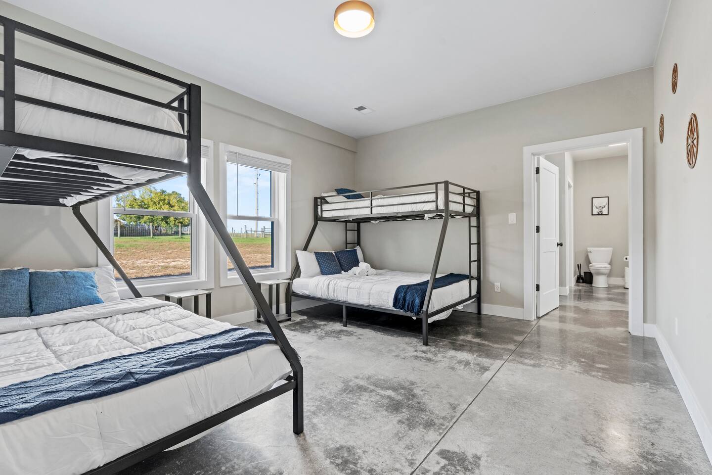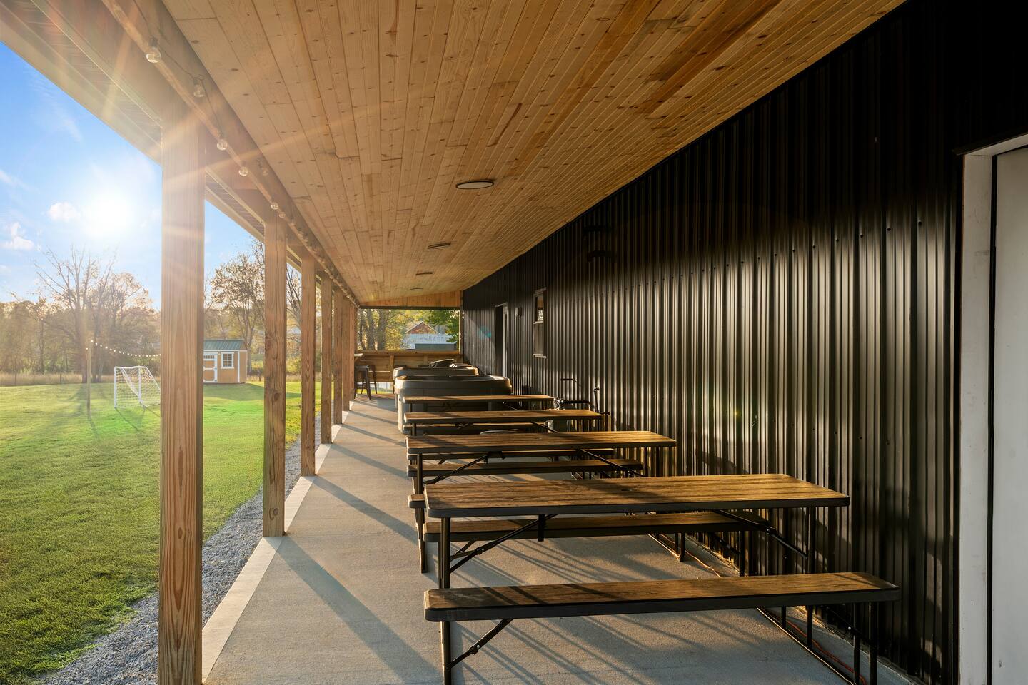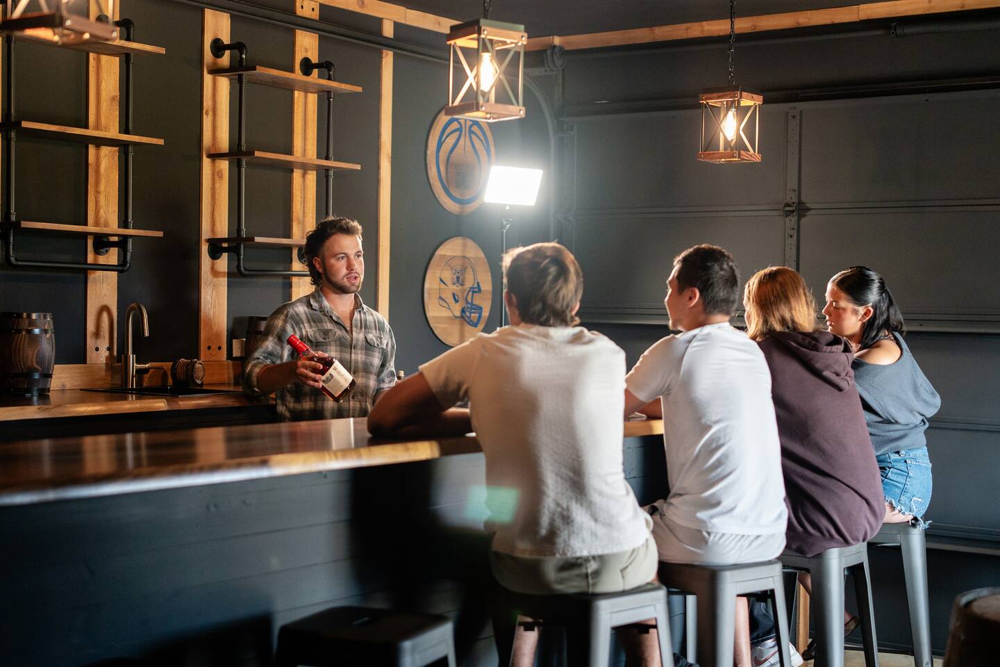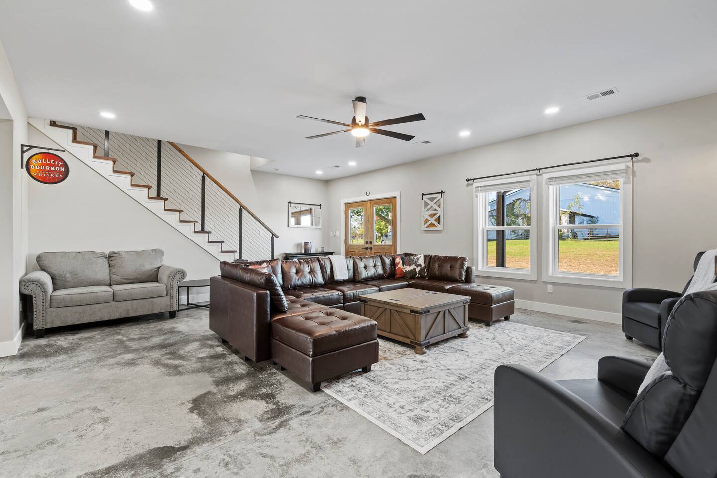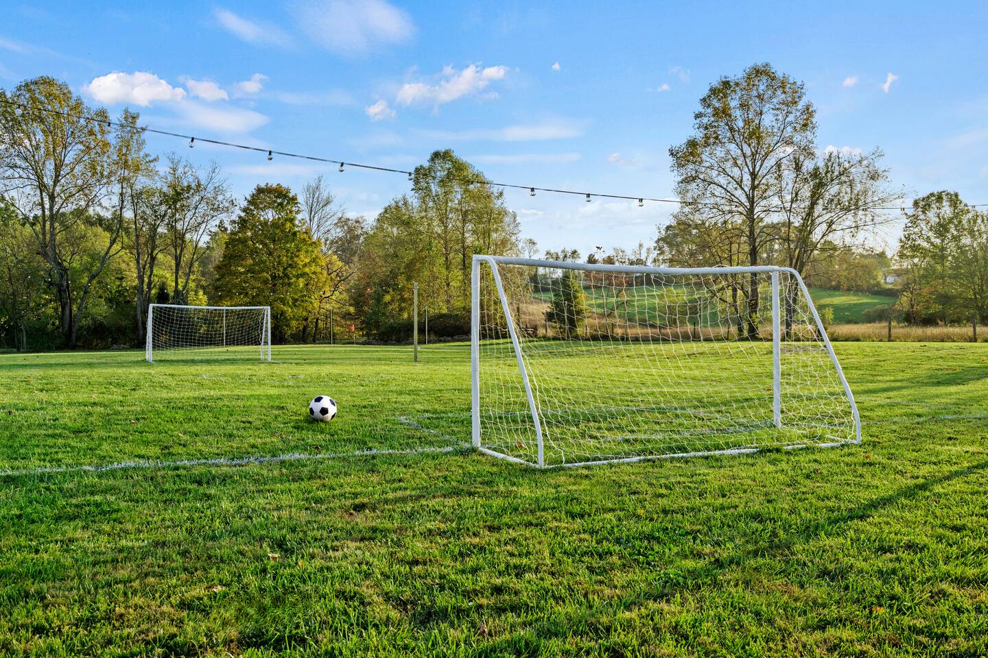 Big Sky Barnhouse...Where historic meets extraordinary. Sleeps 30 guests w/ 7 bedrooms, 19 beds, 4 baths, 5000 sq ft + a private 5-acre sports complex in the fenced-in backyard! Includes a 2-hole golf course (Two 90-yard par 3's), basketball court, regulation wiffleball field w/ a home run fence + scoreboard, 3v3 soccer field, flag football belts + a pickleball court! 2 hot tubs, pergola fire pit, custom speakeasy bourbon bar, 30 person movie theater, arcade, skee-ball, pool table, darts + more!