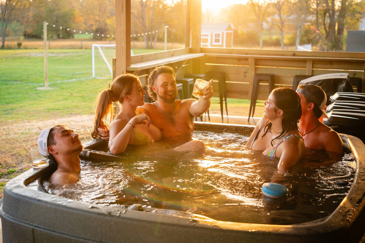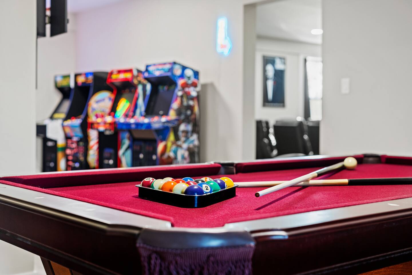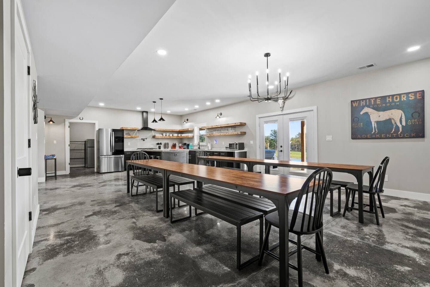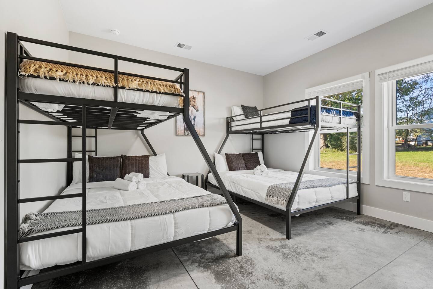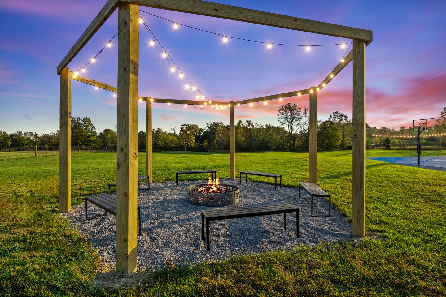 Big Sky Barnhouse...Where historic meets extraordinary. Sleeps 30 guests w/ 7 bedrooms, 19 beds, 4 baths, 5000 sq ft + a private 5-acre sports complex in the fenced-in backyard! Includes a 2-hole golf course (Two 90-yard par 3's), basketball court, regulation wiffleball field w/ a home run fence + scoreboard, 3v3 soccer field, flag football belts + a pickleball court! 2 hot tubs, pergola fire pit, custom speakeasy bourbon bar, 30 person movie theater, arcade, skee-ball, pool table, darts + more!