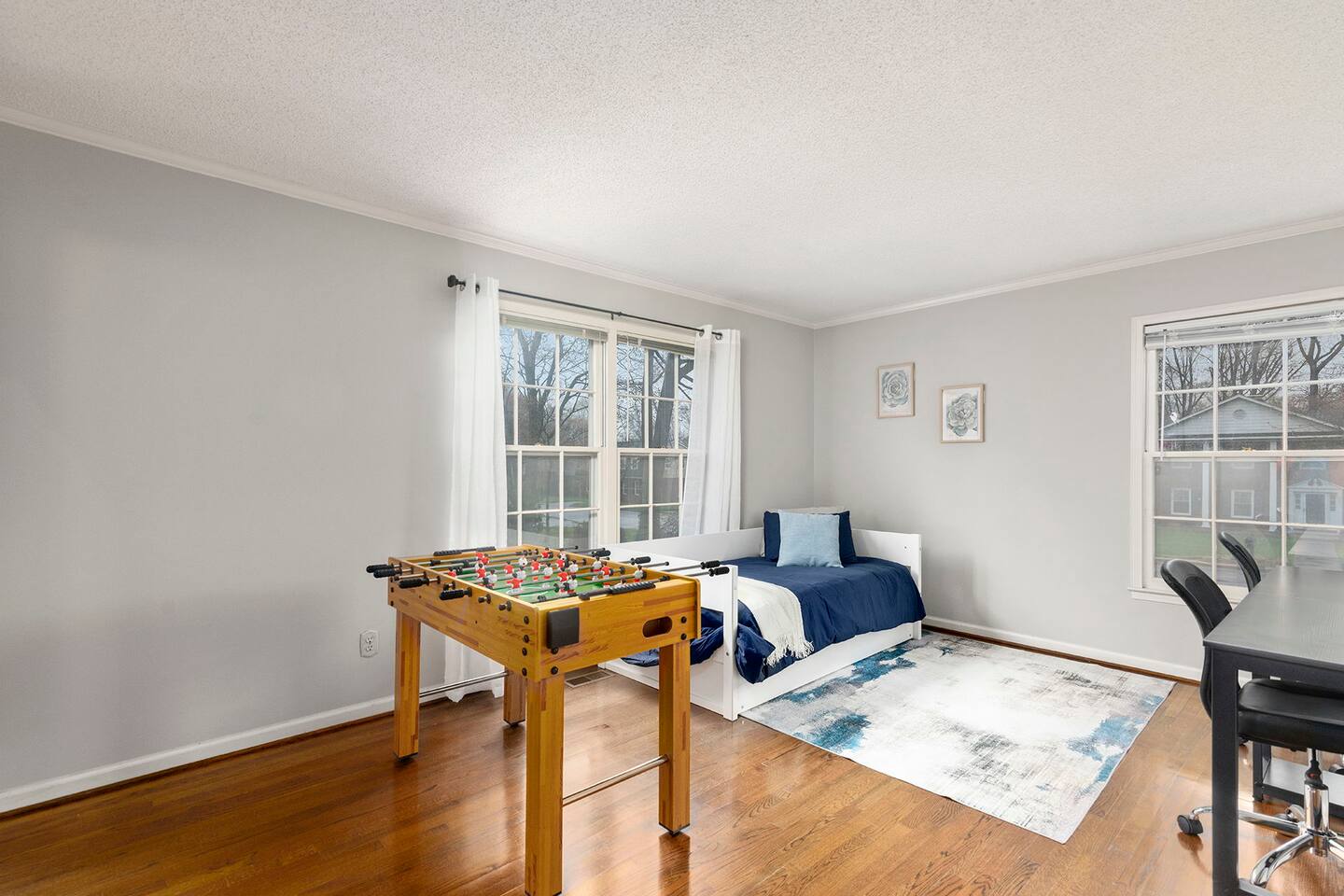 ☀️Office/Den includes 2 person computer desk, foosball table & trundle day bed (sleeping for 2)