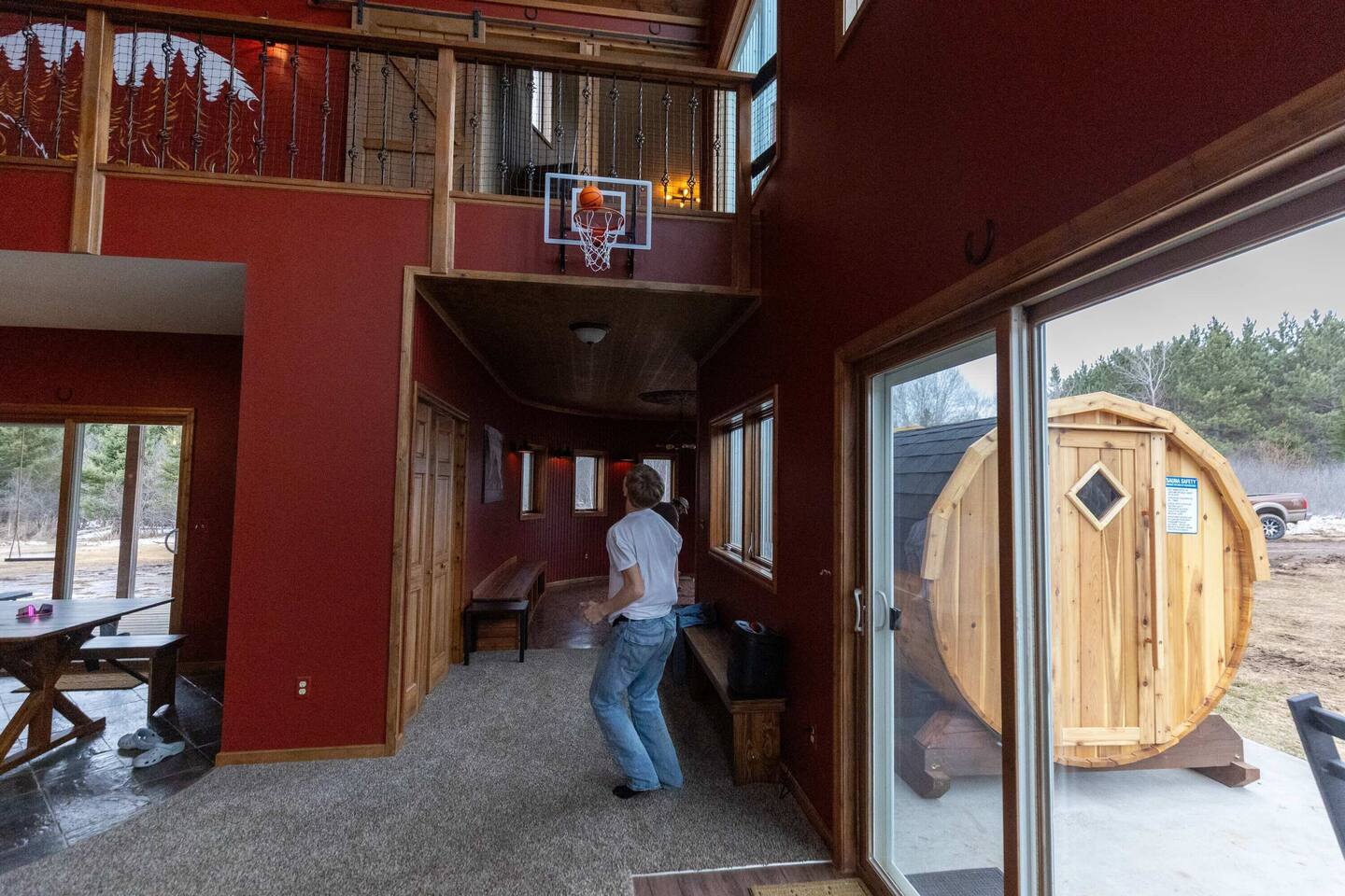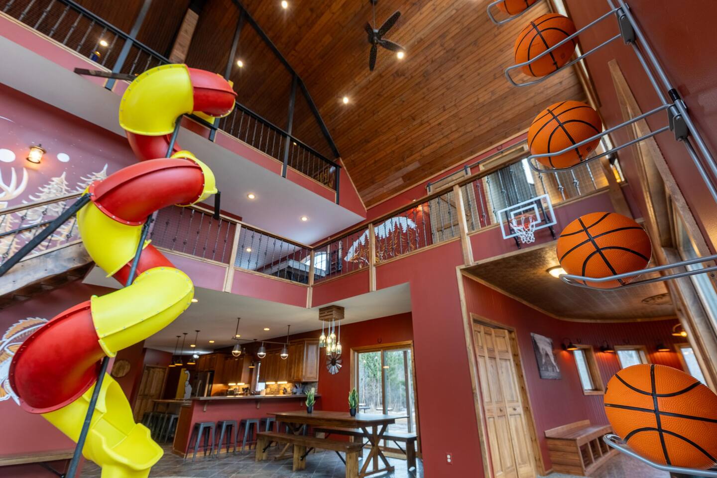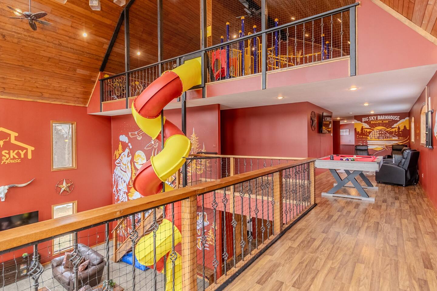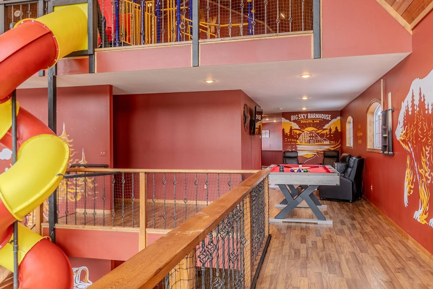 This iconic silo barn is one of the most epic large group getaways in Minnesota. Sleeps up to 30 guests with 7 bedrooms, 20 beds & 4 baths. Featuring your own bowling alley & sports bar, 3rd story adventure park, mini golf course & 30ft slide into the living room. Book a helicopter from the backyard helipad to experience Lake Superior by sky. Explore 10 private acres of trails by foot or ATV & visit the horse farm. Fitness center, sauna, hot tub, arcade, billiards lounge & mini basketball court!