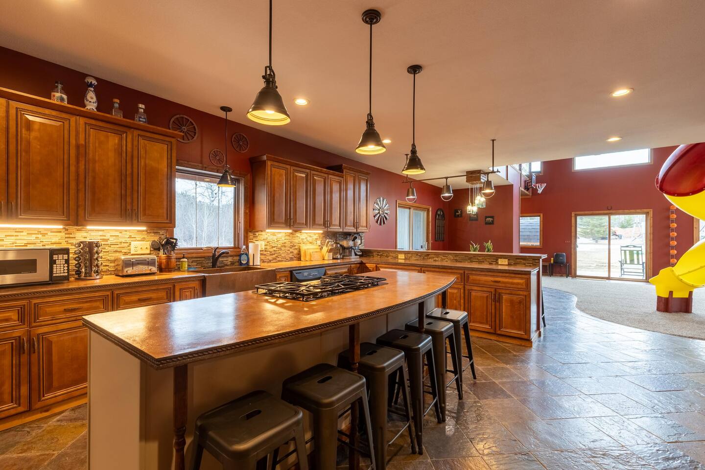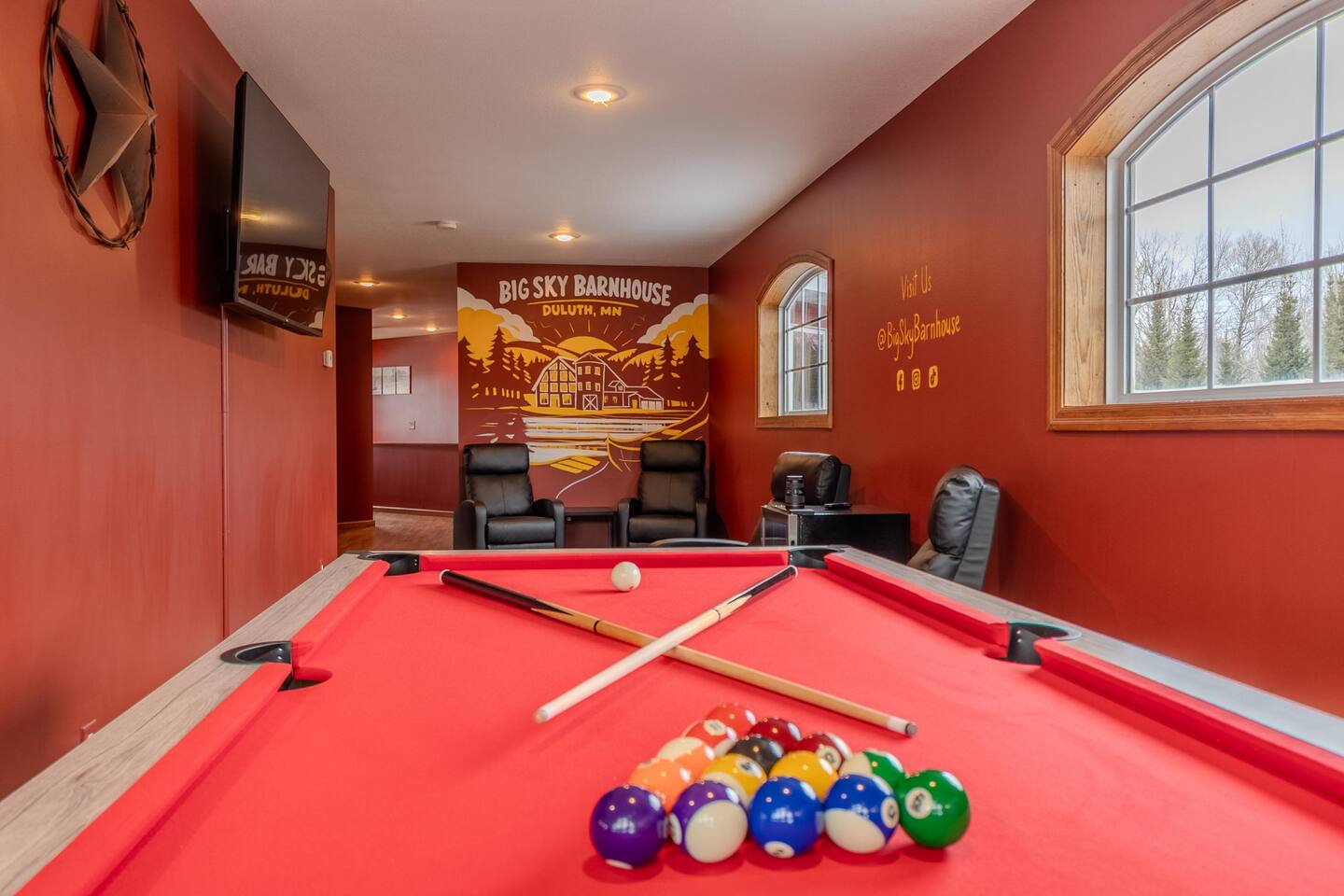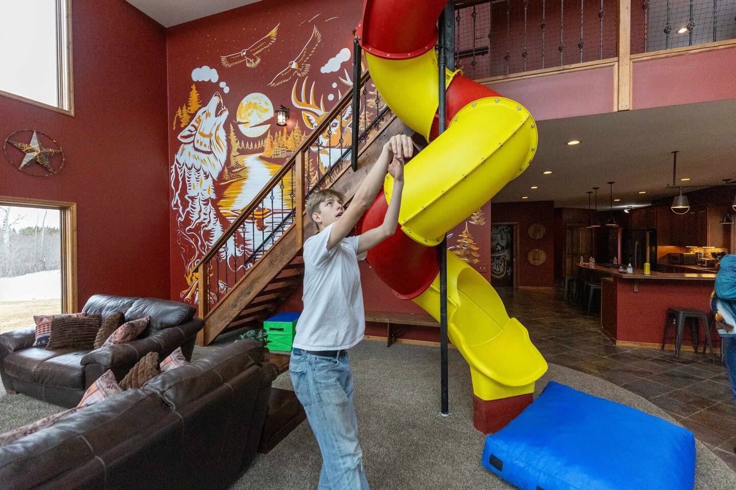 This iconic silo barn is one of the most epic large group getaways in Minnesota. Sleeps up to 30 guests with 7 bedrooms, 20 beds & 4 baths. Featuring your own bowling alley & sports bar, 3rd story adventure park, mini golf course & 30ft slide into the living room. Book a helicopter from the backyard helipad to experience Lake Superior by sky. Explore 10 private acres of trails by foot or ATV & visit the horse farm. Fitness center, sauna, hot tub, arcade, billiards lounge & mini basketball court!