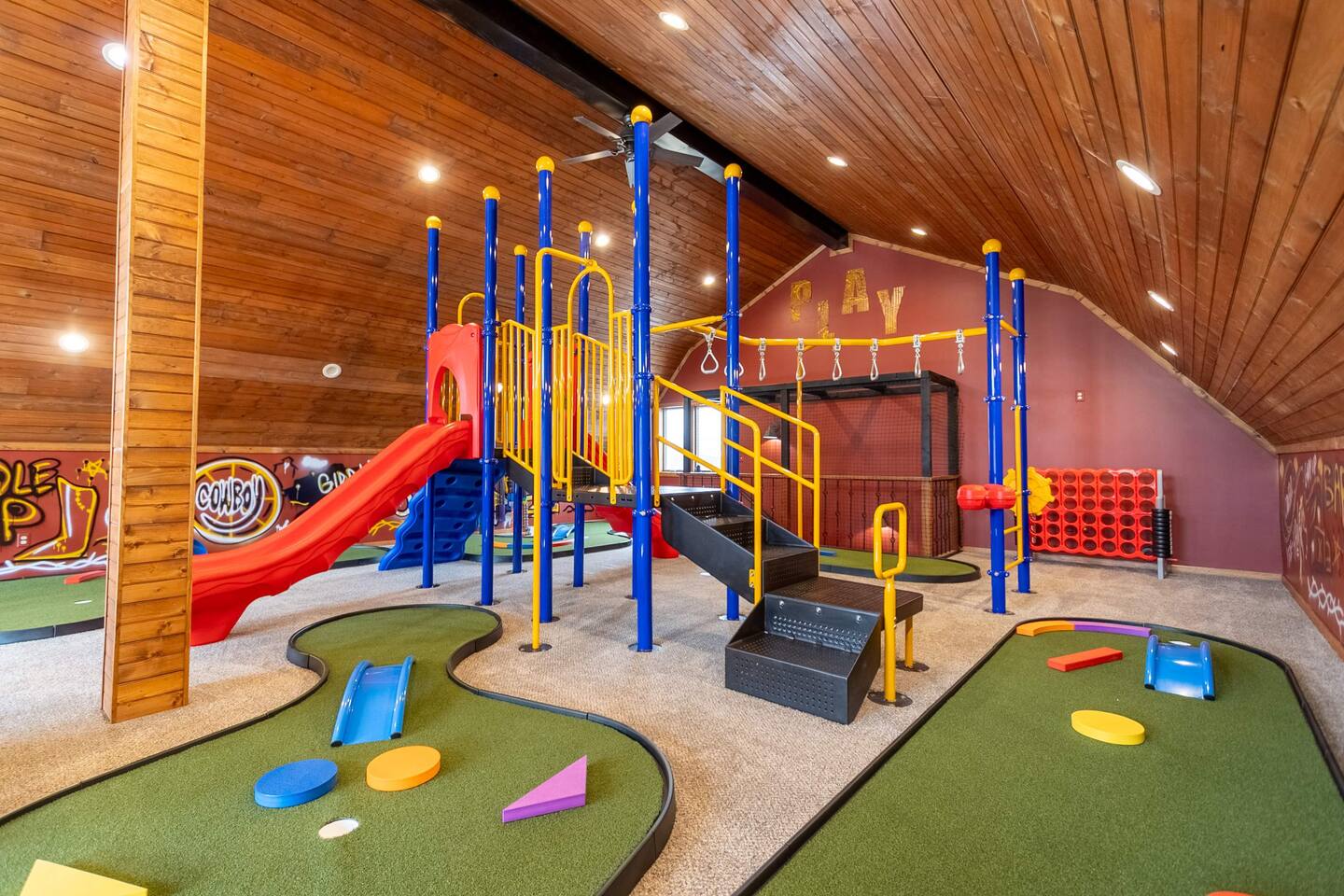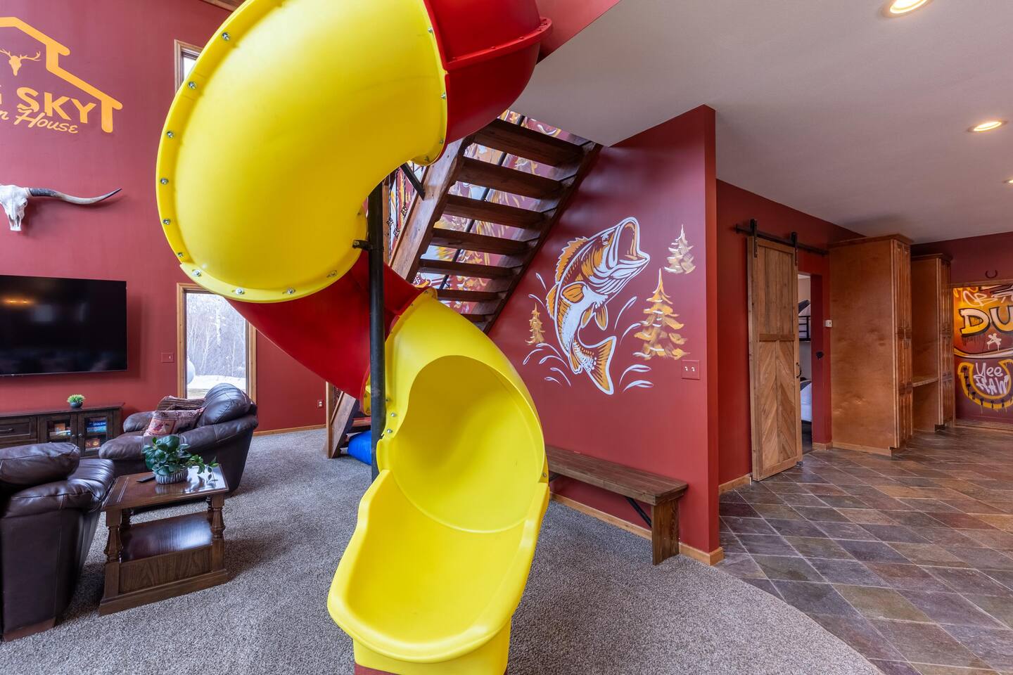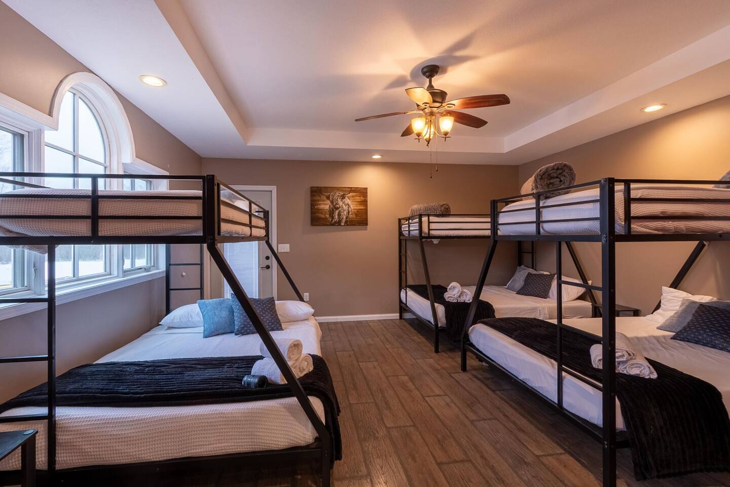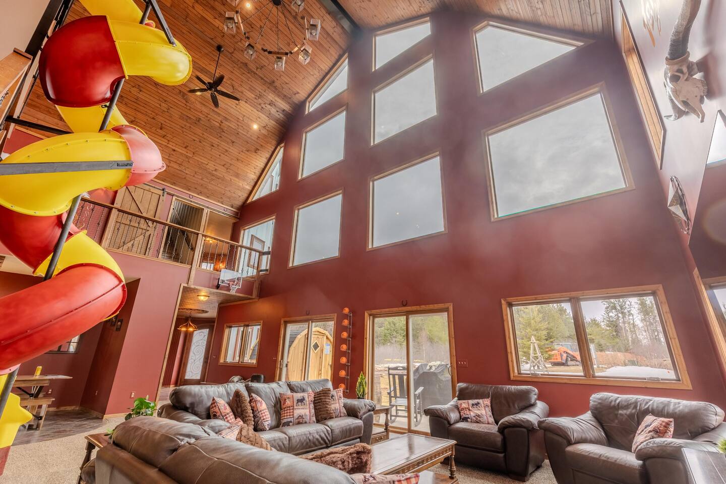 This iconic silo barn is one of the most epic large group getaways in Minnesota. Sleeps up to 30 guests with 7 bedrooms, 20 beds & 4 baths. Featuring your own bowling alley & sports bar, 3rd story adventure park, mini golf course & 30ft slide into the living room. Book a helicopter from the backyard helipad to experience Lake Superior by sky. Explore 10 private acres of trails by foot or ATV & visit the horse farm. Fitness center, sauna, hot tub, arcade, billiards lounge & mini basketball court!