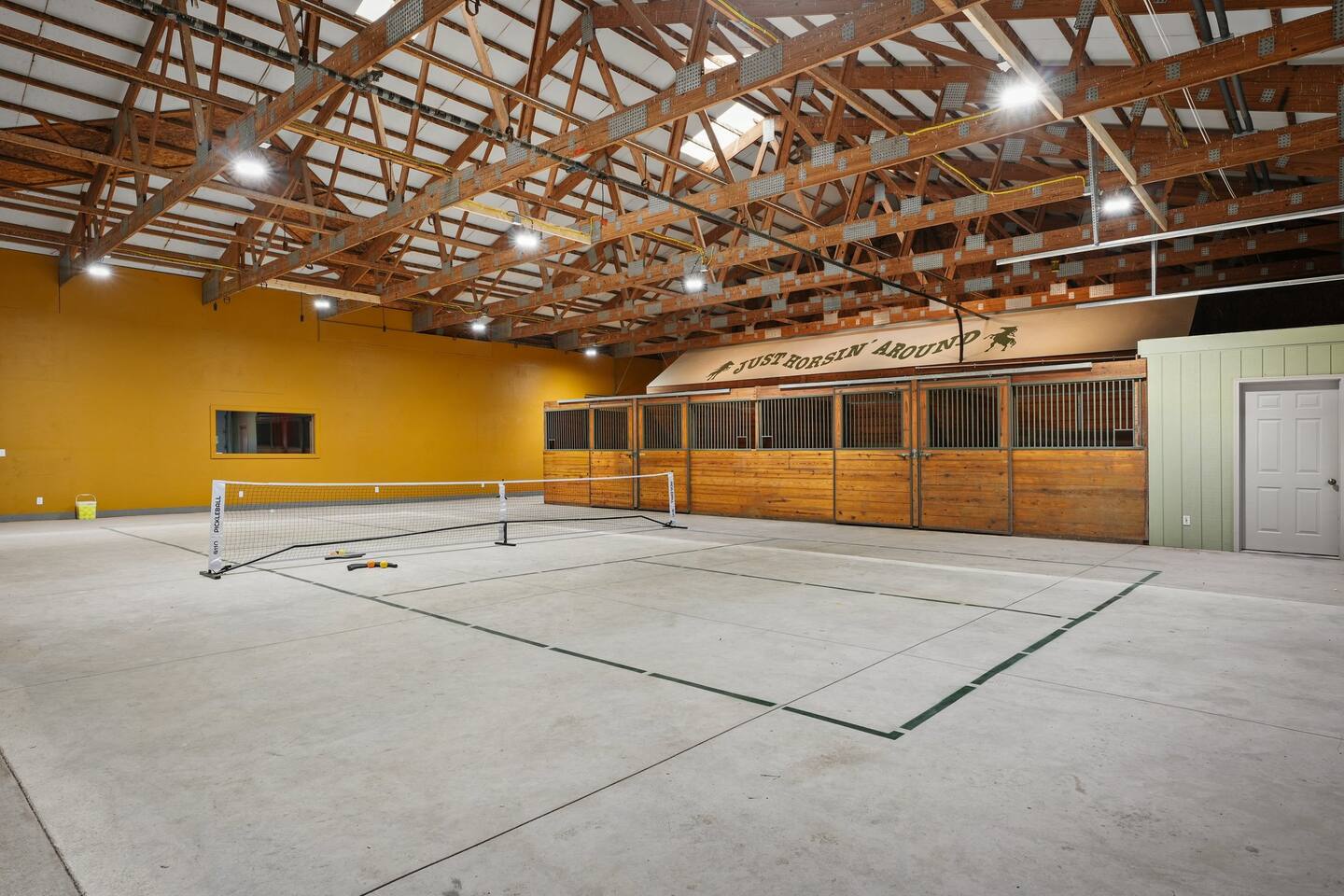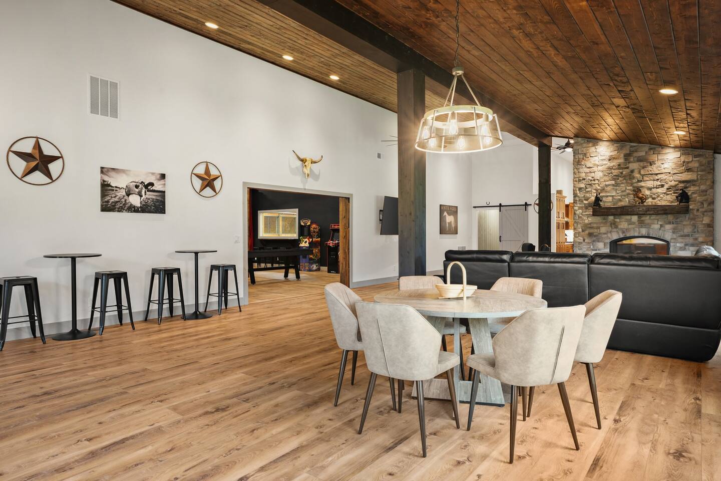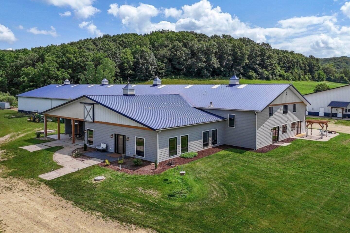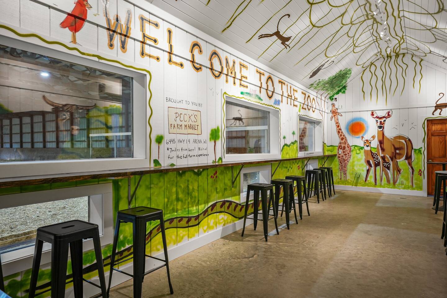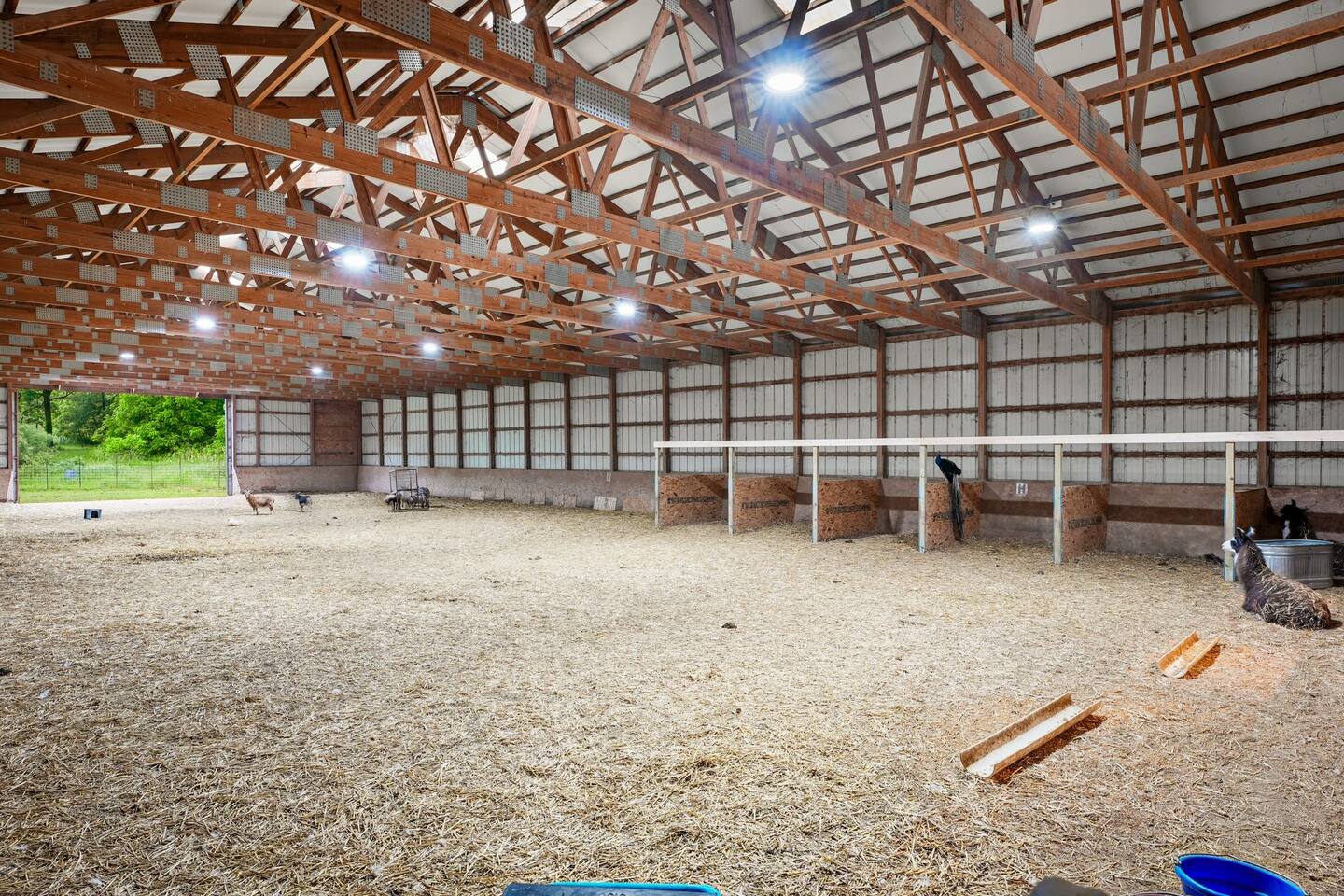 Yes, an Indoor Zoo—inside a luxurious Barndominium that sleeps 20 guests! Escape to 100 private acres in Spring Green, WI and stay in one of the Midwest’s most unforgettable vacation homes. In addition to the pool + hot tub, this barn features your very own indoor zoo with llamas, ponies, peacocks, goats, sheep & more! Plus: indoor pickleball and basketball courts, huge movie theater, arcade, pool table, darts, shuffleboard, trails, and space for 20 guests. This is not a stay—it’s an experience.