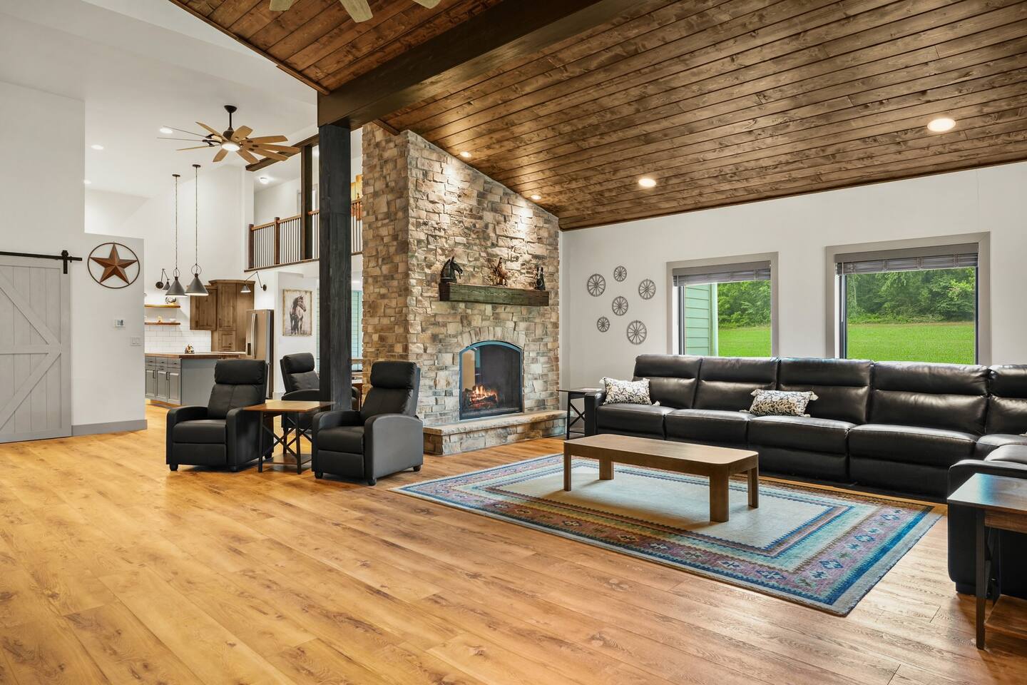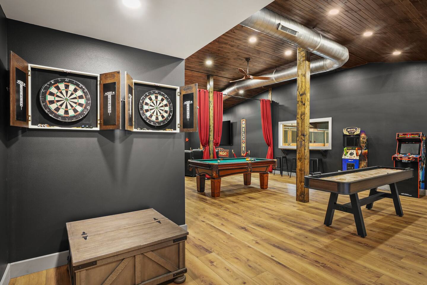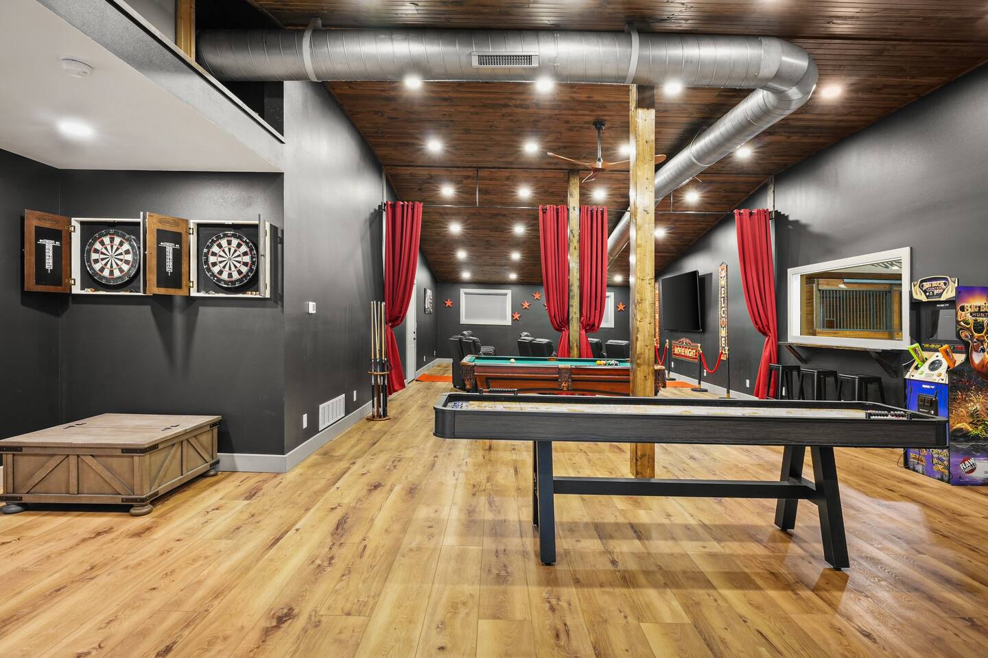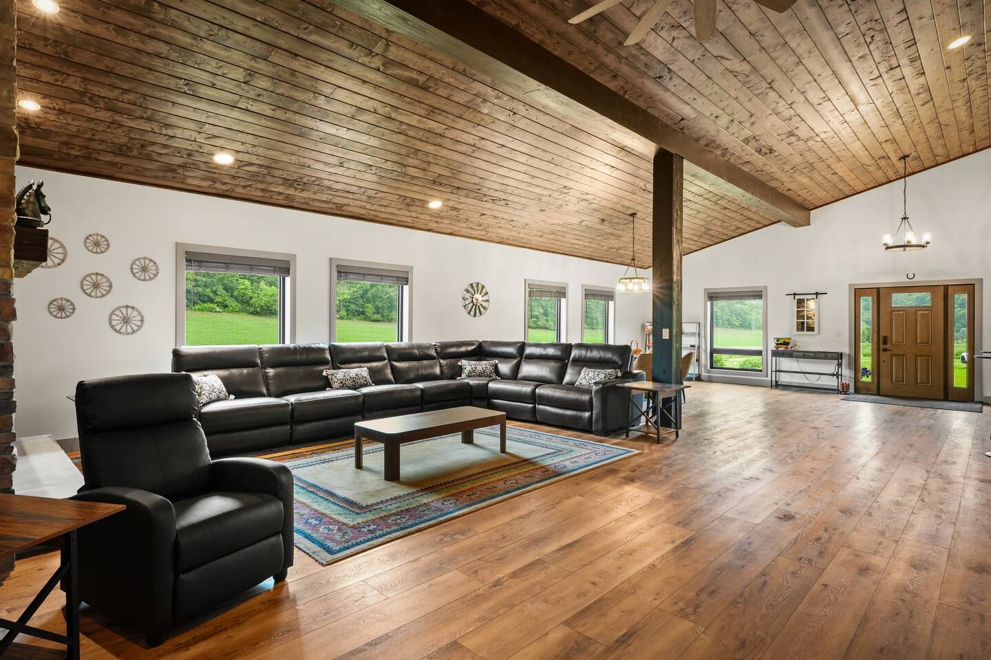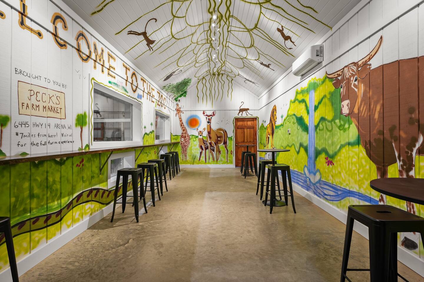 Yes, an Indoor Zoo—inside a luxurious Barndominium that sleeps 20 guests! Escape to 100 private acres in Spring Green, WI and stay in one of the Midwest’s most unforgettable vacation homes. In addition to the pool + hot tub, this barn features your very own indoor zoo with llamas, ponies, peacocks, goats, sheep & more! Plus: indoor pickleball and basketball courts, huge movie theater, arcade, pool table, darts, shuffleboard, trails, and space for 20 guests. This is not a stay—it’s an experience.