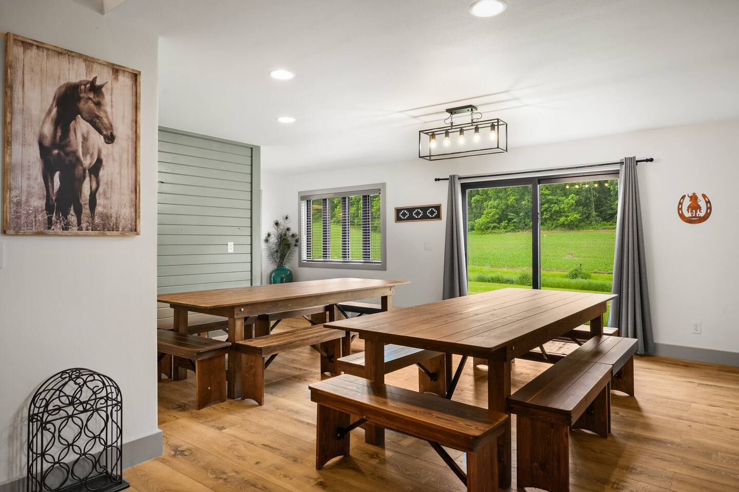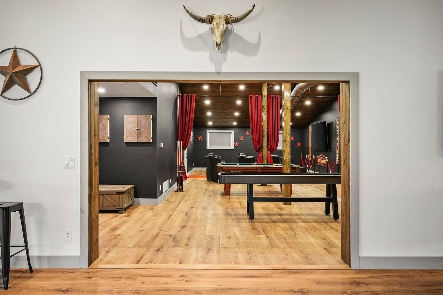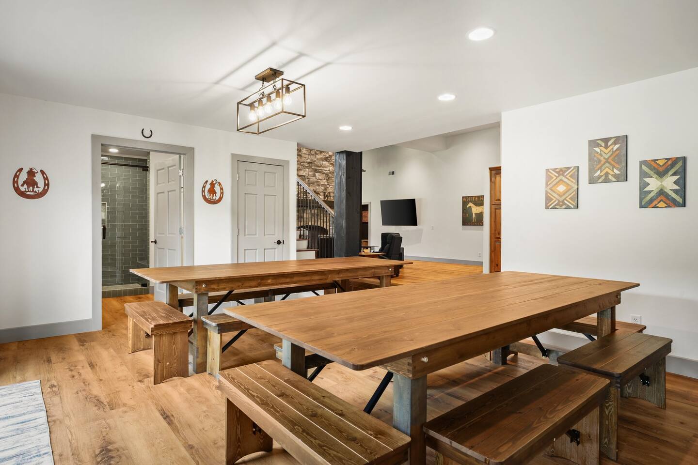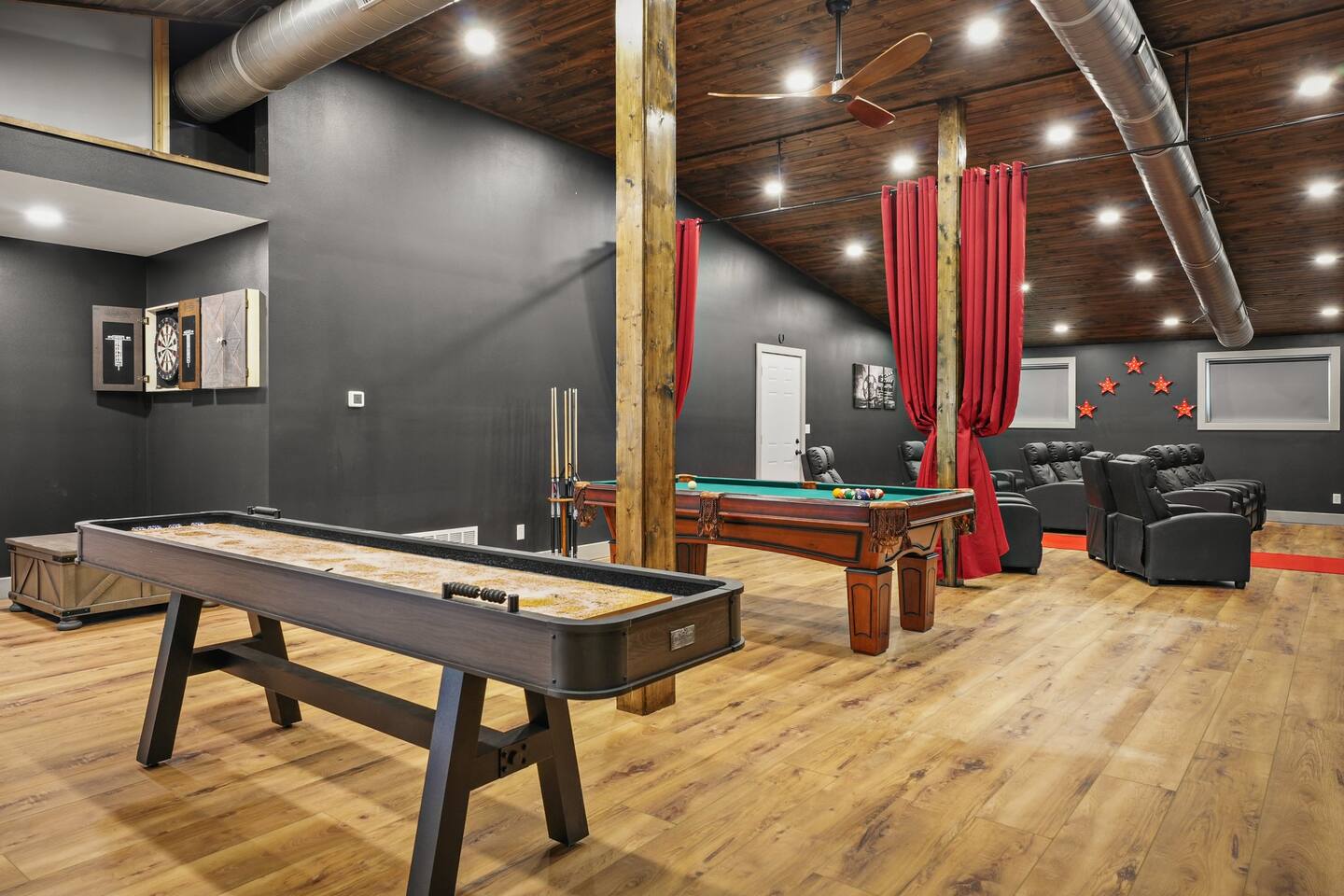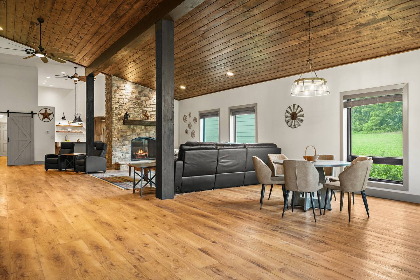 Yes, an Indoor Zoo—inside a luxurious Barndominium that sleeps 20 guests! Escape to 100 private acres in Spring Green, WI and stay in one of the Midwest’s most unforgettable vacation homes. In addition to the pool + hot tub, this barn features your very own indoor zoo with llamas, ponies, peacocks, goats, sheep & more! Plus: indoor pickleball and basketball courts, huge movie theater, arcade, pool table, darts, shuffleboard, trails, and space for 20 guests. This is not a stay—it’s an experience.