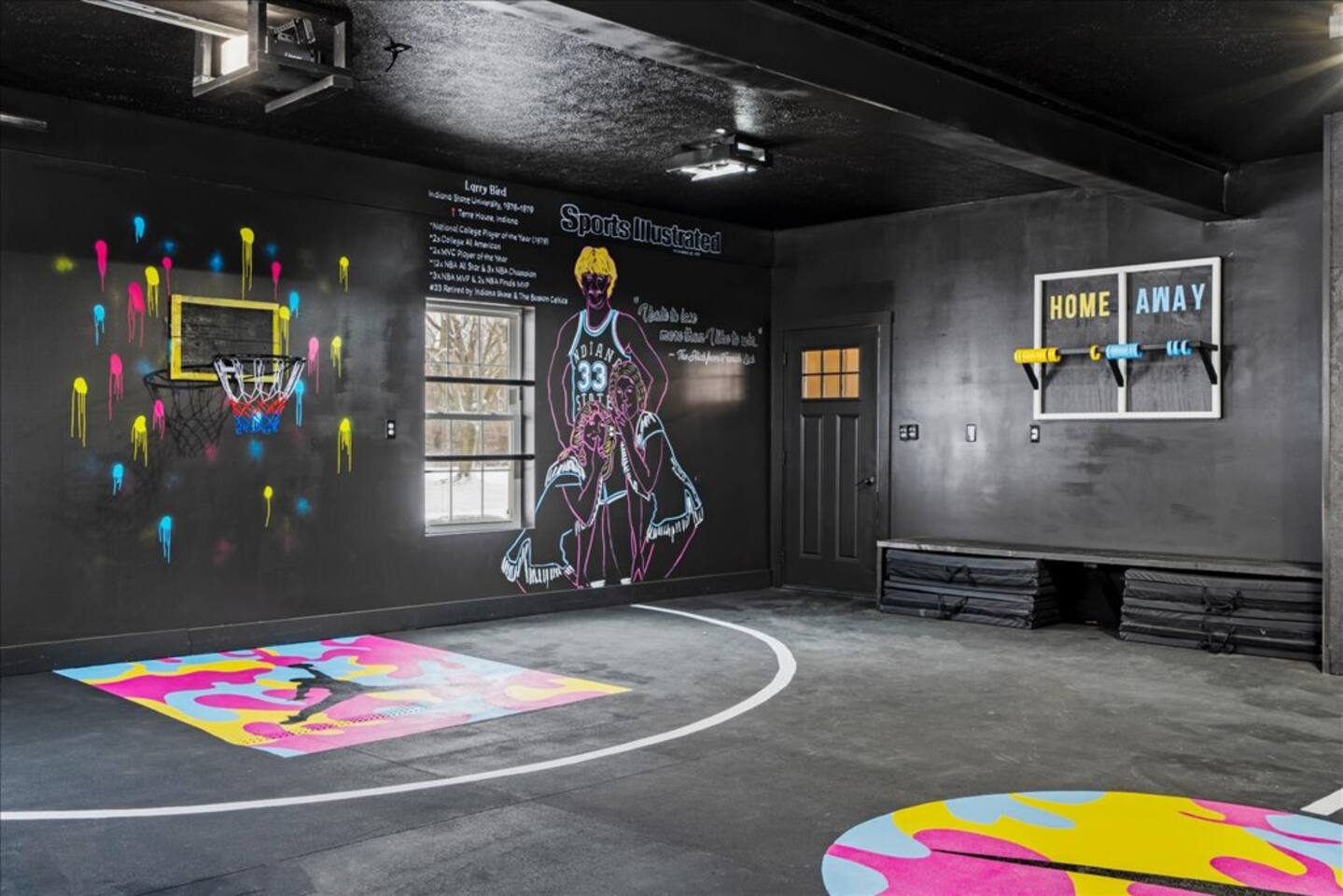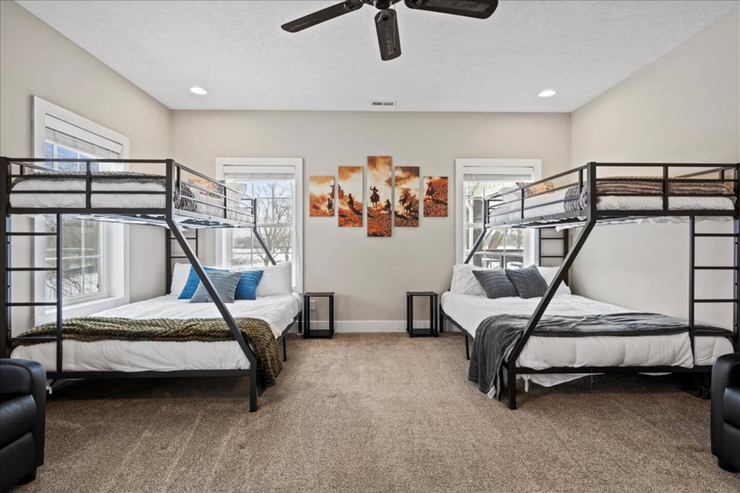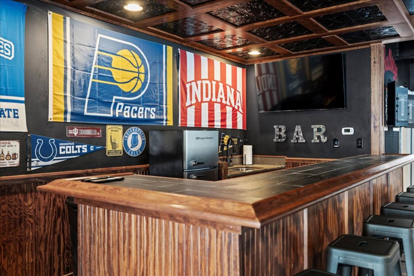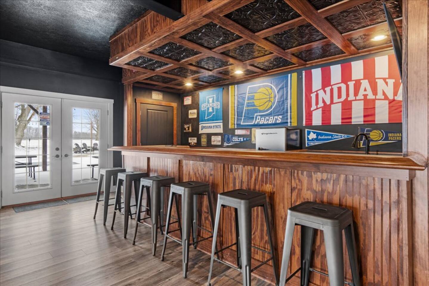 The newest barn from Big Sky Barnhouse (1st in Indiana) is located on 13 private acres packed with amenities galore! The outside: saltwater pool, hot tub, firepit, slide off the deck, poolside lounge/bar, ATV loop, 8 RV hookups, plus a "Pet Penthouse" for your furry friends. The inside: mini full basketball court that converts to a nerf gun arena & dodgeball court. Also includes a movie theater, putting green, wet bar, & arcade. 30 guest max capacity, 7 bedrooms, 19 beds, 3 full bathrooms