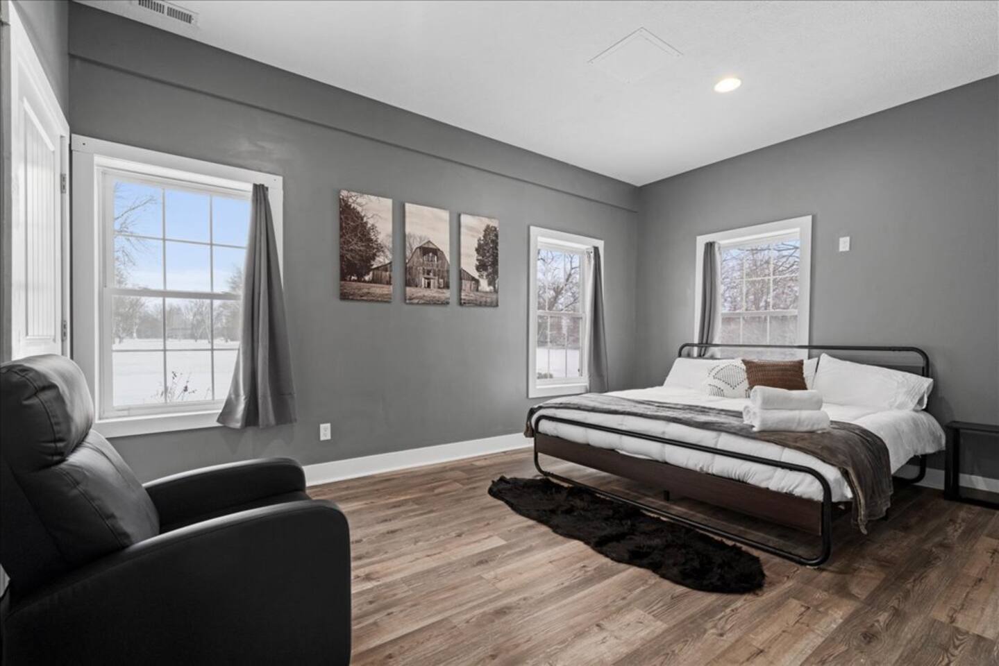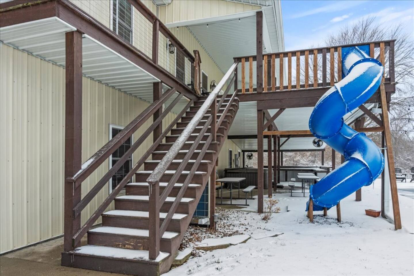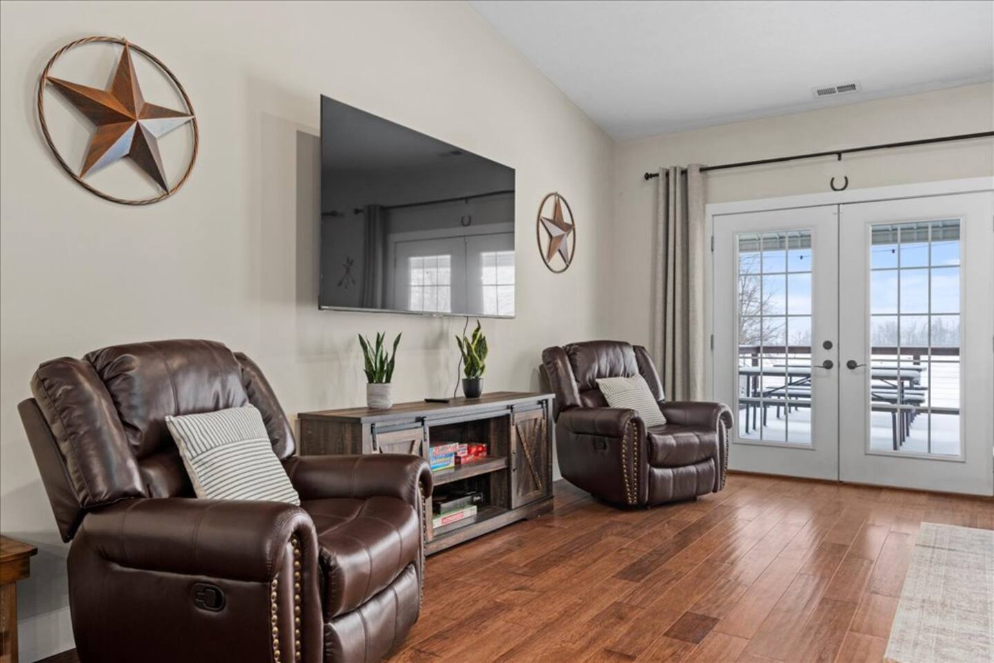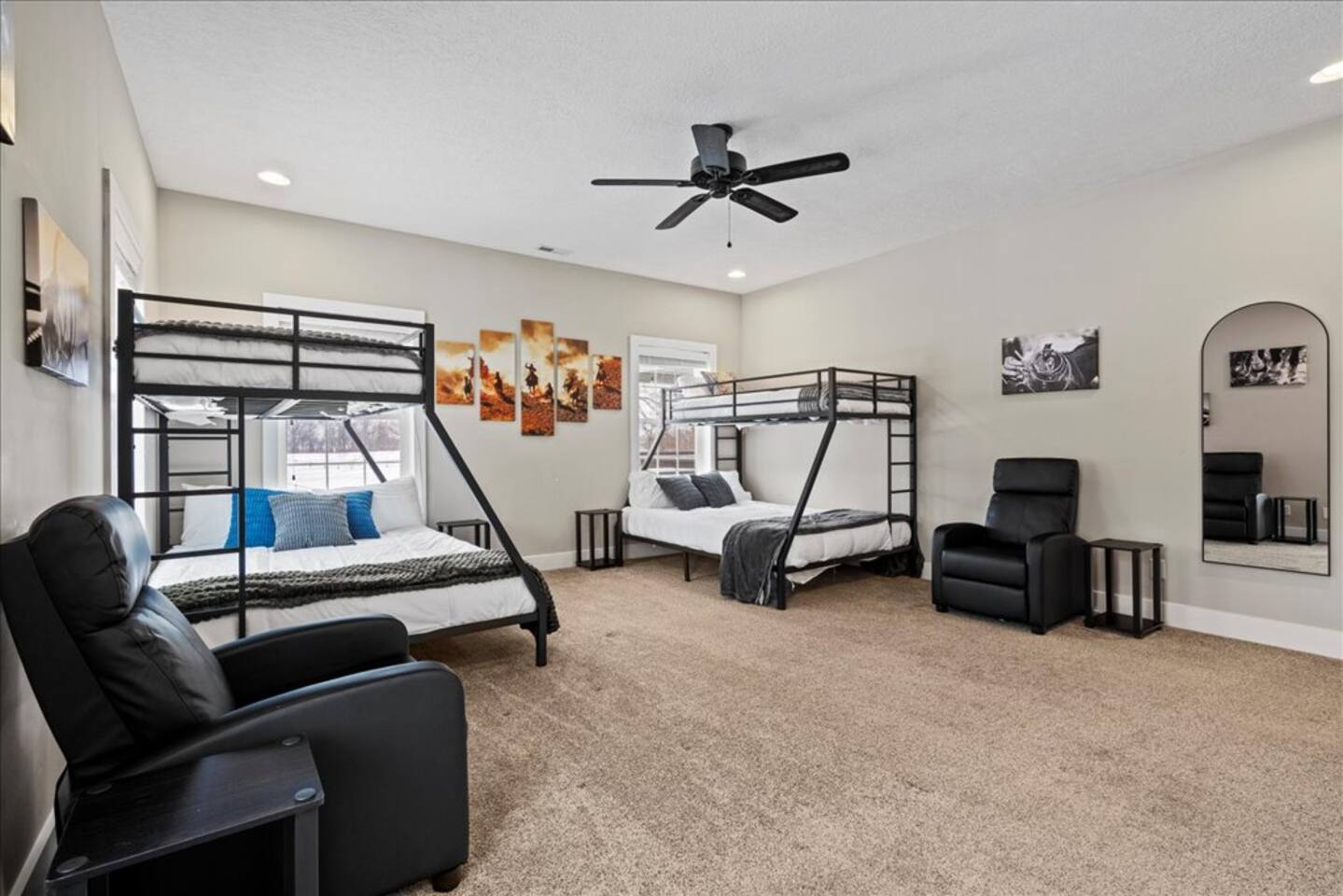 The newest barn from Big Sky Barnhouse (1st in Indiana) is located on 13 private acres packed with amenities galore! The outside: saltwater pool, hot tub, firepit, slide off the deck, poolside lounge/bar, ATV loop, 8 RV hookups, plus a "Pet Penthouse" for your furry friends. The inside: mini full basketball court that converts to a nerf gun arena & dodgeball court. Also includes a movie theater, putting green, wet bar, & arcade. 30 guest max capacity, 7 bedrooms, 19 beds, 3 full bathrooms