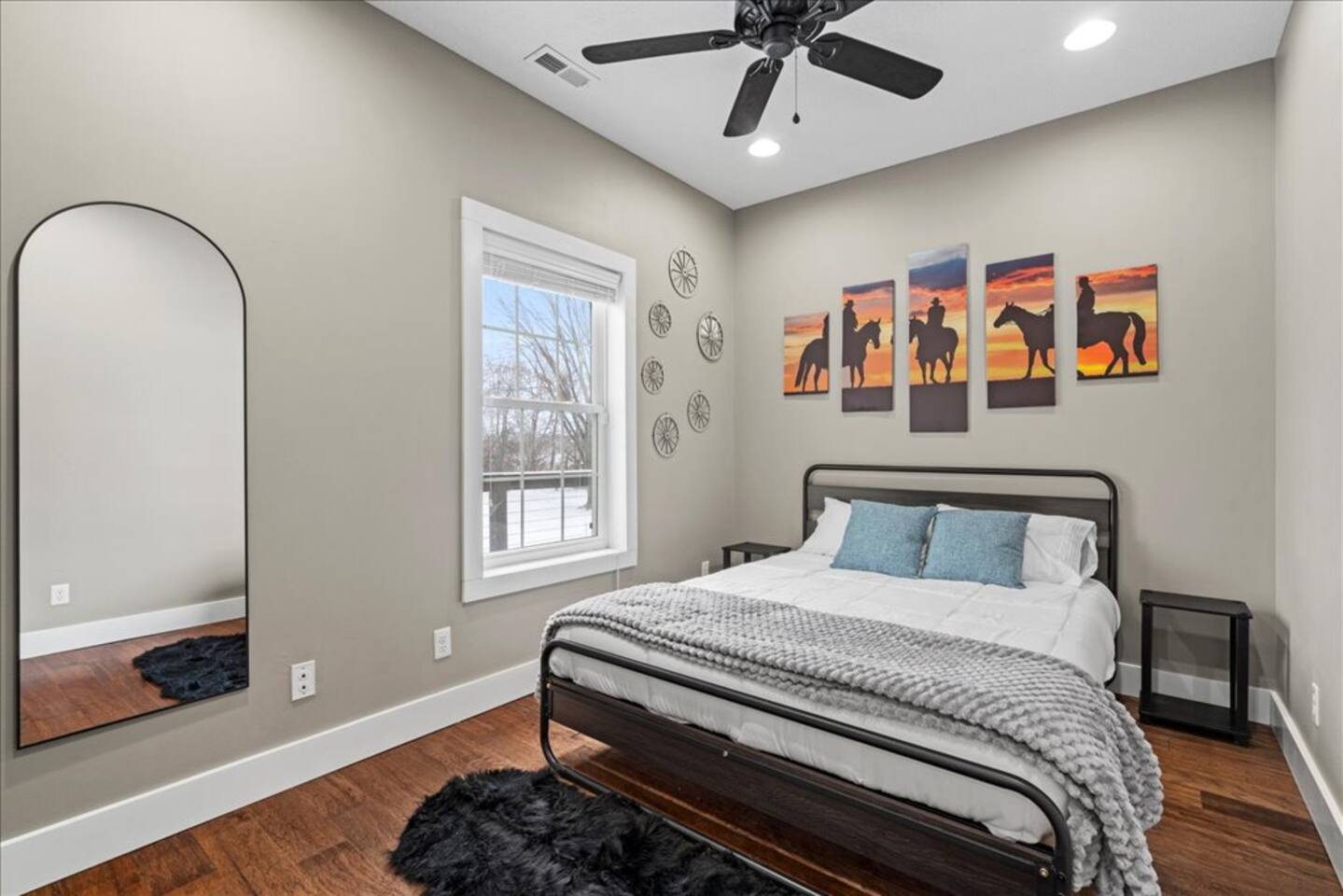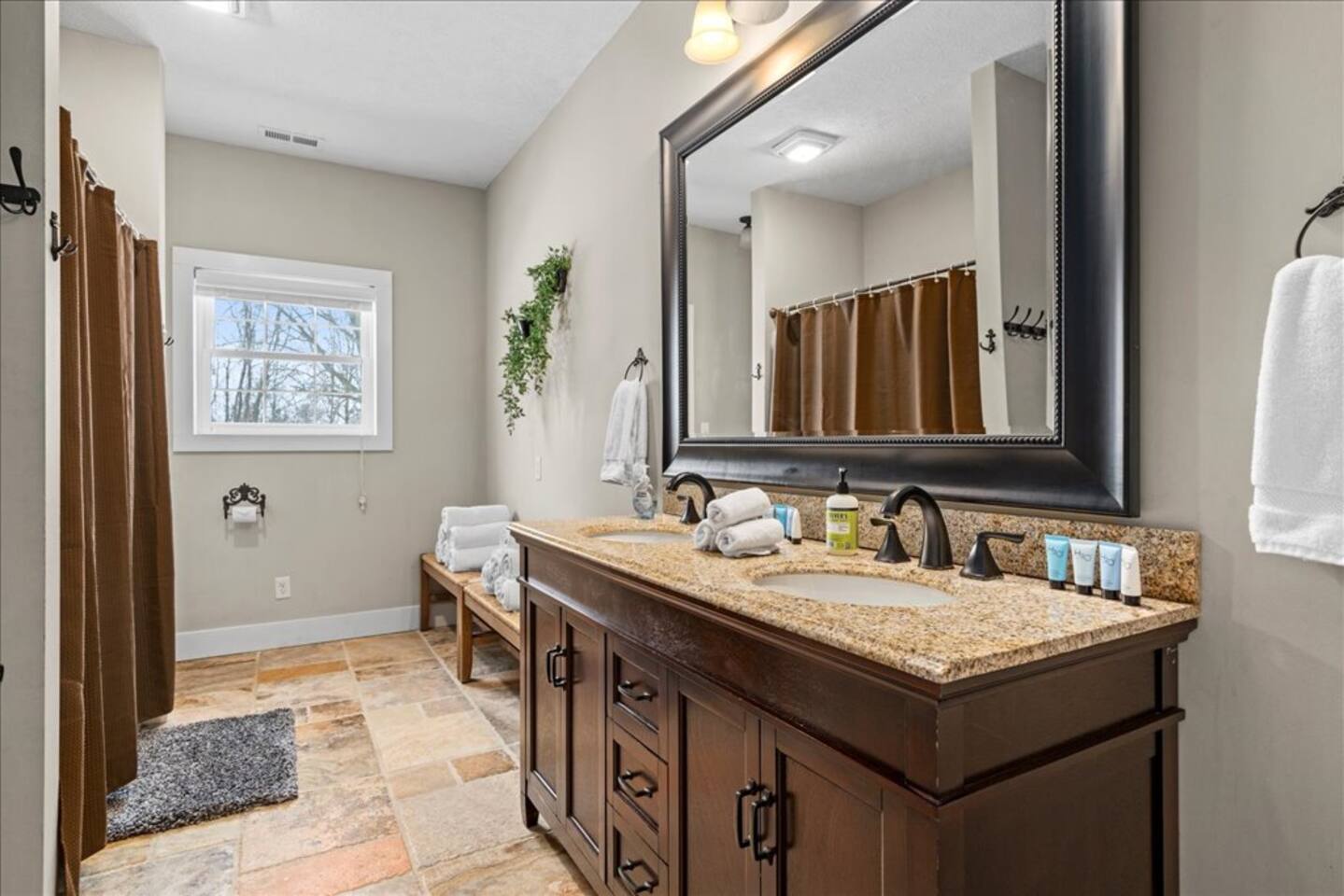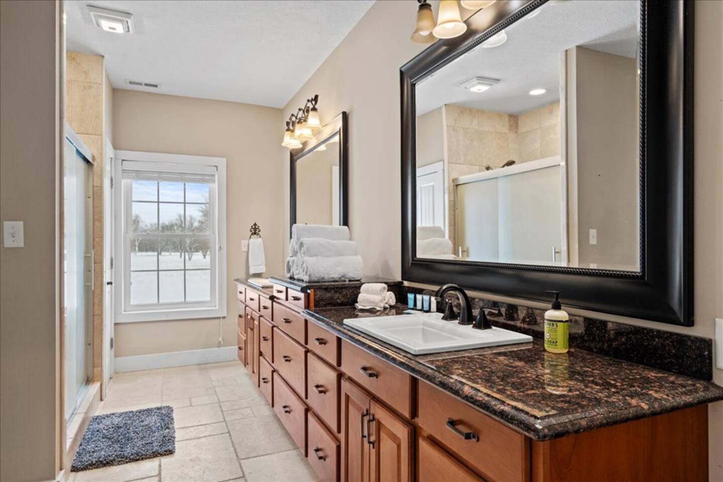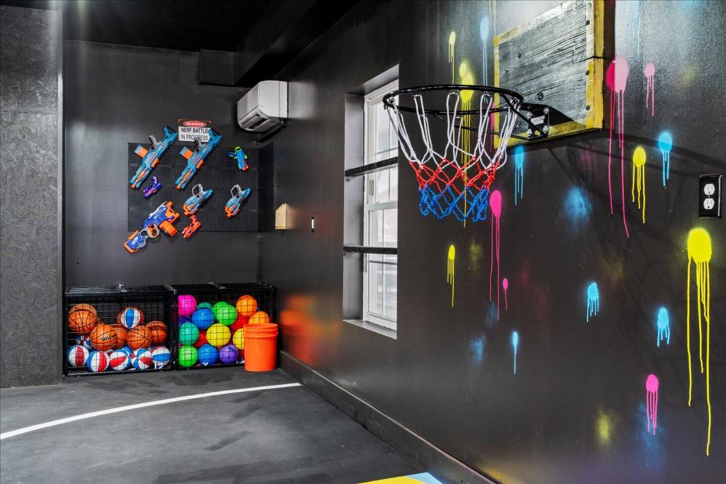 The newest barn from Big Sky Barnhouse (1st in Indiana) is located on 13 private acres packed with amenities galore! The outside: saltwater pool, hot tub, firepit, slide off the deck, poolside lounge/bar, ATV loop, 8 RV hookups, plus a "Pet Penthouse" for your furry friends. The inside: mini full basketball court that converts to a nerf gun arena & dodgeball court. Also includes a movie theater, putting green, wet bar, & arcade. 30 guest max capacity, 7 bedrooms, 19 beds, 3 full bathrooms