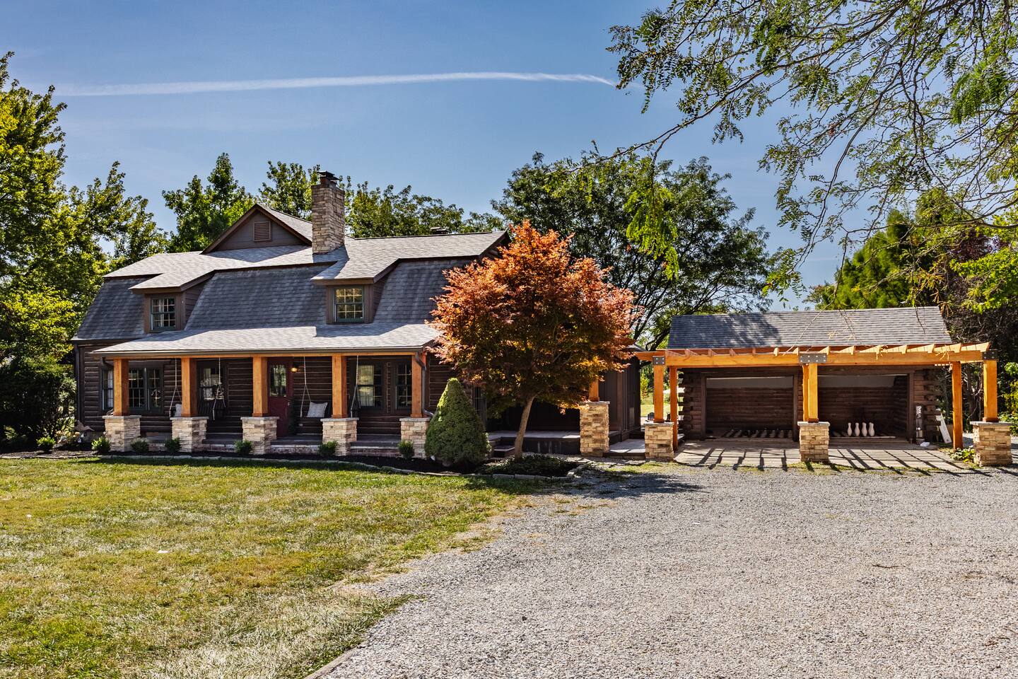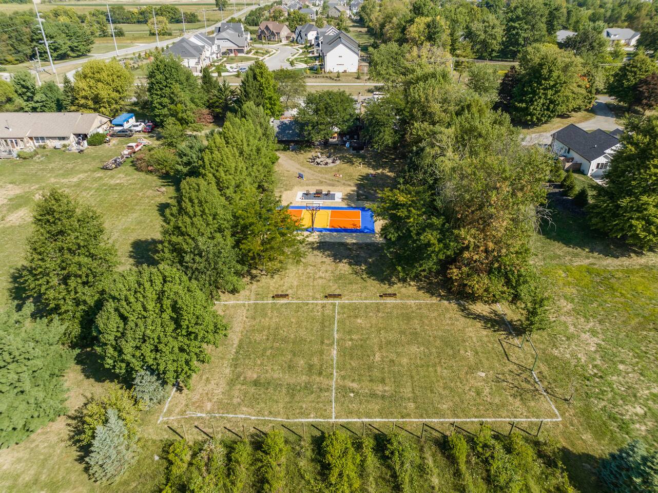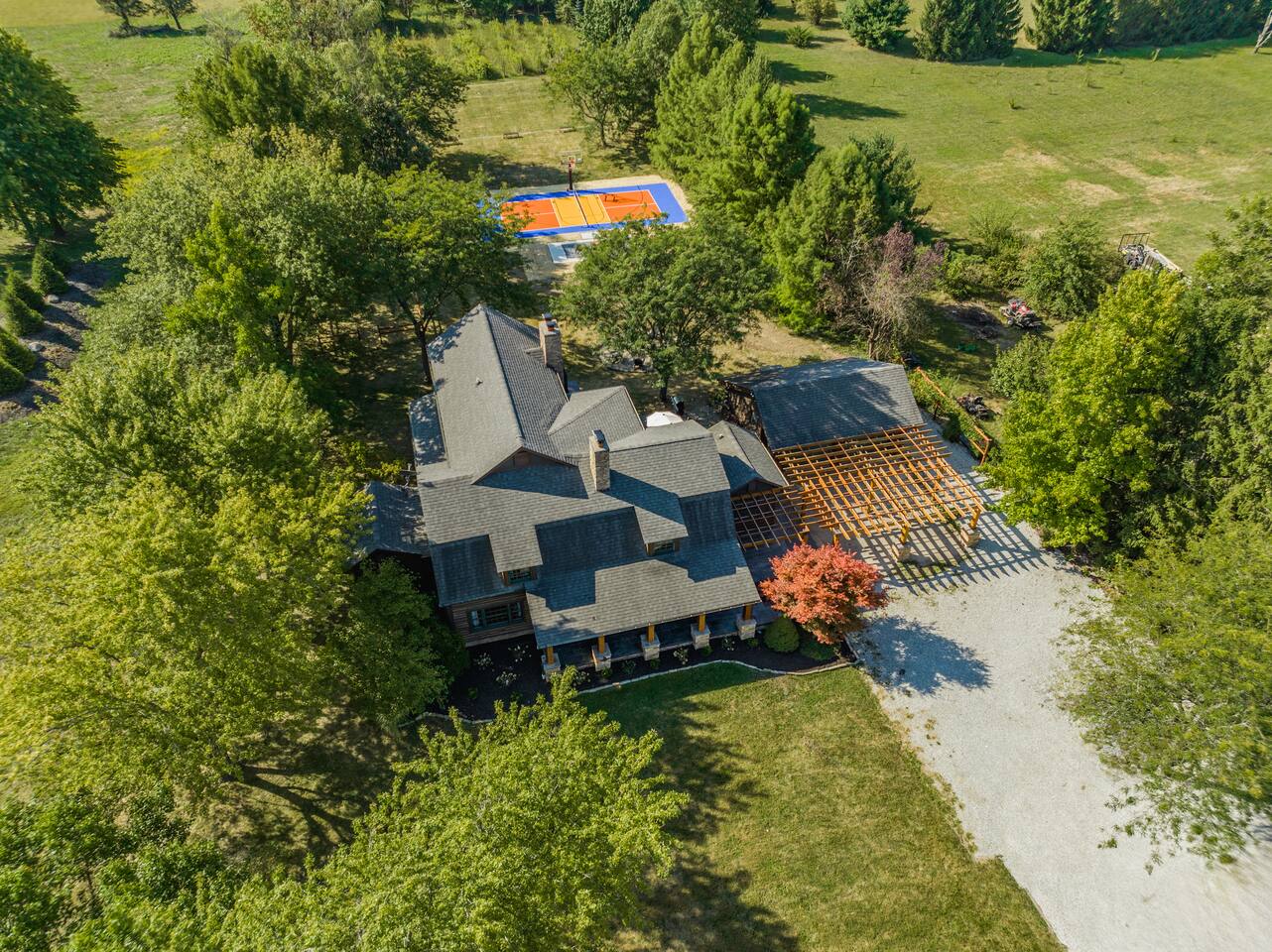 Come enjoy this beautiful private estate in central Westfield, set on 1.5 acres just minutes from Grand Park, downtown Westfield, and Carmel. Outdoors features a pickleball & basketball court, hot tub, fire pit, outdoor fireplace, deck, and your own private mini sports field! Inside boasts 4,200 sq ft with a movie theater, game room, office, and sleeps up to 16.
